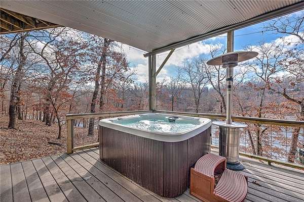 This architectural lakefront home has everything you've been looking for - an easy walk to the water, panoramic views, a boat slip - and more! This 1.5 acre property offers 200 ft of shoreline, a 3,508 sqft main house w/ 3-beds & 3.5-baths and a detached garage w/ 1-bed/1-bath mother in-law's suite. Both have been updated with modern touches like quartz and granite counters tops and all bedrooms have lake-views and deck access. Just a short gentle walk to your 10x24 covered boat slip in the community dock. Entertainment spaces abound indoors and out with an expansive two-level deck, large fire pit, and hot tub (which conveys!). Inside, relax in the spacious upstairs living room by the fireplace or downstairs in the basement game room. Current owners operate the main house as a highly-rated short-term rental. Offset the cost of ownership by continuing or rent the ADU long-term. Located in a quiet cove off Coose Hollow, this property is a short boat ride from Prairie Creek Marina and 25 minutes from Downtown Rogers.