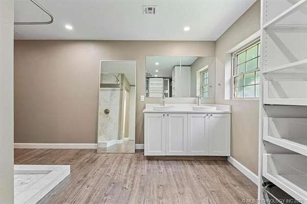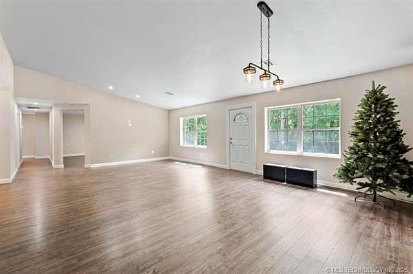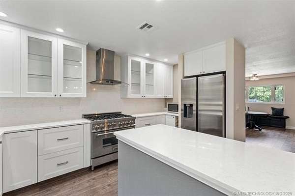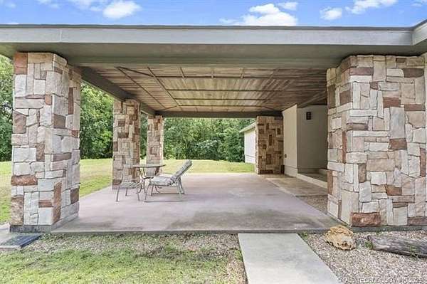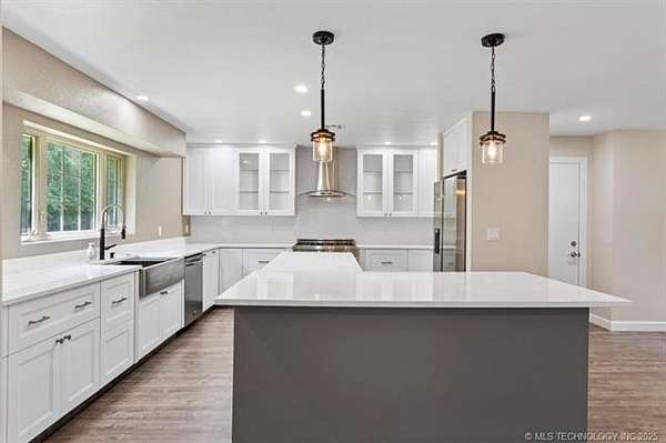 3.77 Acres m/l. Tucked away right in town, this completely updated 4-bedroom, 5-bathroom ranch-style home. Step inside and discover Luxury. The spacious living area is perfect for both entertaining and relaxing Fully steel framed, this home was built to last and built to impress. The kitchen is a standout, updated kitchen boasts new quartz countertops and backsplash a 36-inch professional gas range, stainless steel appliances, and plenty of storage. 27kw generator, tankless water heaters and all-electric heat pump HVAC systems to ensure comfort and efficiency throughout. A unique extra living space doubles as a steel-and-concrete storm shelter. This one of a kind property offers PRIVACY with in town convenience