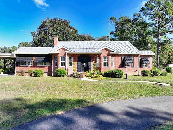 Picturesque, 4/2, brick beauty with a whimsical style that evokes the charm of a traditional storybook estate, with 3,217 sq. ft., bordering a private, large acreage, estate. Beautiful attributes from the 1955 era such as cedar lined closet, crystal door knobs, original oak floors, wide baseboards, double bay windows, 24x10 screened porch and entertainment deck. Boasting edge of town convenience, the golf course is only 2 miles. Mother in law suite potential plus 2 carports. Located on 1.5 acres, with no HOA, no restrictions, bring the chickens for the 12 x 12 chicken coop! Zoned MU-BUS-RES, perfect for multi generational family, business, professional office or multi family dwellings. Property includes an existing private communication antennae, ideal for amateur radio enthusiasts, or off grid preparedness-minded buyers interested in self reliance. Enough open ground for a pony, a vegetable garden, a fruit orchard and a future 2nd home. Golf cart friendly community. Paved driveway! With thoughtfully preserved character, throughout you will find so much to love... definitely a must experience home. Three airports (Perry, Valdosta & Thomasville) are within 30 minutes. Archbold Memorial Hospital is 21 miles away. Monticello's boutique district, restaurants & Opera House is 1.6 miles. Make an appointment today!