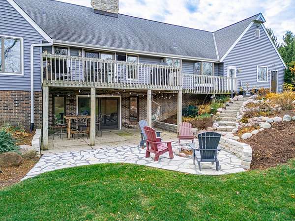 Beautiful, sprawling ranch home set on 5 peaceful acres zoned Agricultural, featuring full walkout exposure! With over 4,000 sq ft of living space across two levels, this home offers abundant room to spread out and enjoy comfortable country living. The inviting Family Room includes a brick fireplace, is open to the Kitchen, and features sliding doors leading to a large deck--perfect for entertaining or taking in the serene views. A spacious first-floor Laundry Room offers exceptional convenience with abundant cabinetry and an exterior door for easy access. The light-filled Kitchen shines with crushed quartz countertops, double ovens, a cooktop, and a generous dinette area overlooking the picturesque yard. Adjacent to the kitchen, the sunken Living Room and Formal Dining Room are lined with large windows that flood the space with natural light. The walkout lower level provides incredible additional living space, including a large family room, kitchenette area, and a second family room currently used as a home office, theater room, or potential 4th bedroom (note the Murphy bed). A full bathroom completes the lower level. The full walkout lower level leads directly to a patio and firepit--ideal for outdoor relaxation and gatherings. A rare blend of acreage, privacy, and spacious living, this property is ready to welcome you home. Located in Belvidere North School District with easy access to main roads, Rockford, and I-90. Plenty of Room for a second garage.