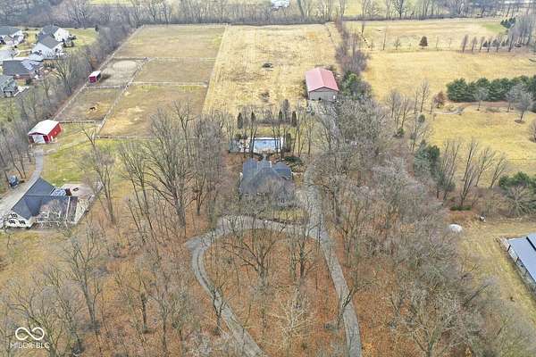 Location, Location, Location! The opportunities are endless with this beautiful property. Almost 7 acres in one of the best Noblesville locations. Welcome home to 16282 Hazel Dell Rd. Once you've driven back on the wooded private drive, you'll see a beautiful home waiting for you. Inside you'll find 4 bedrooms with 4 full bathrooms. Enjoy open concept kitchen to the family room with a separate dining room. On the main level, you'll also find two bedrooms, including the primary. Also on the main floor is a den/living room with a fireplace and custom barn doors. Upstairs, you'll find a loft area and two more bedrooms with private bathrooms. The fourth bedroom is large enough that it could also be considered an additional living space and be used similar to a basement. Outside you'll find a large 20x40 pool, poolhouse, firepit and lounging area. Beyond this there is a very large barn, the possibilities are truly endless with this property. This one won't last long - check it out today.