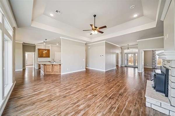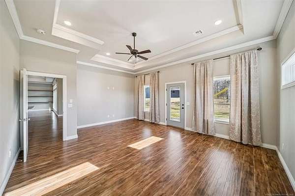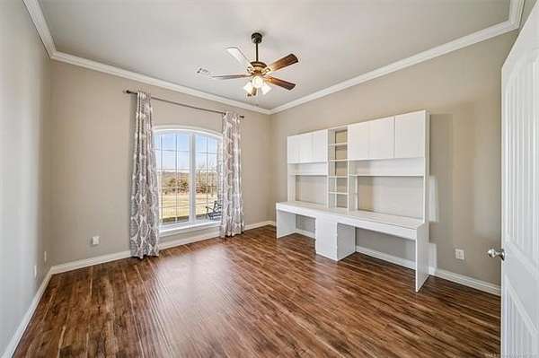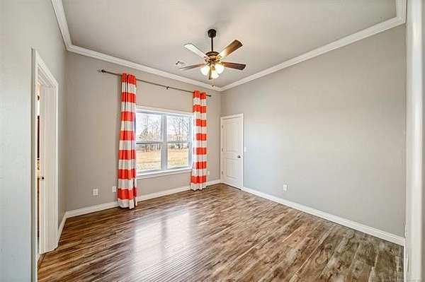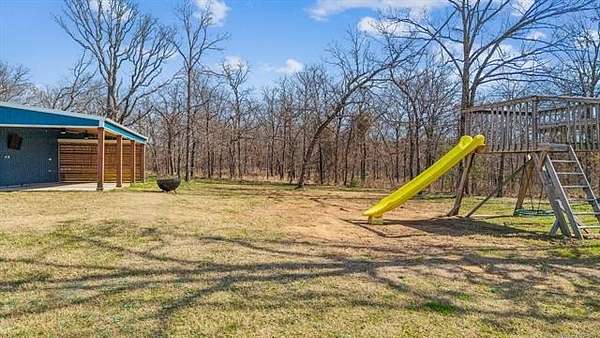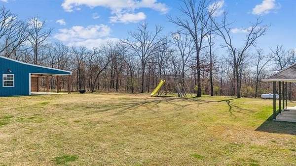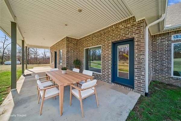 Welcome to this beautiful custom-built home on 3.5 acres offering the perfect combination of peaceful seclusion while still being part of a neighborhood, giving you the best of both worlds. Inside, you'll find a thoughtful layout designed for comfortable living. The kids even have their own playroom on their side of the home, creating the perfect space for games, toys, and activities. This home also features two large flex spaces that could easily serve as home offices, hobby rooms, workout spaces, or additional living areas, making it ideal for today's flexible lifestyles. Large windows throughout the home provide abundant natural light, creating an airy and bright interior and an excellent layout for entertaining guests. The primary suite includes a walk-in safe room, offering an added level of security and convenience. A large shop, with a covered patio area, perfect for an outdoor kitchen, gives you the perfect space for projects, hobbies, equipment, or additional storage. If you've been searching for a spacious home with acreage, privacy, flexible living spaces, and a shop, this Claremore property is a rare find!