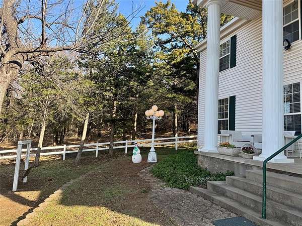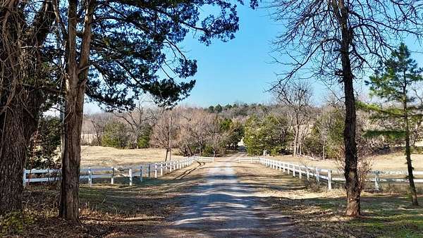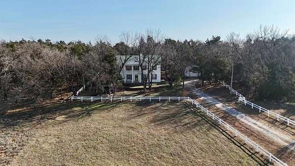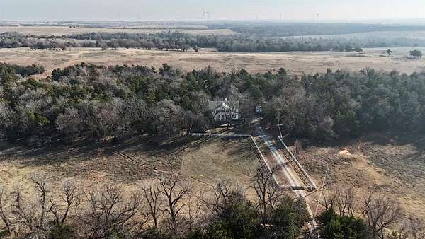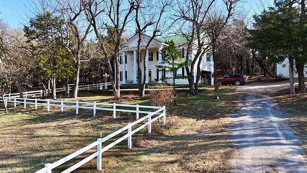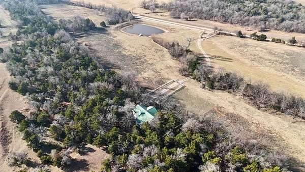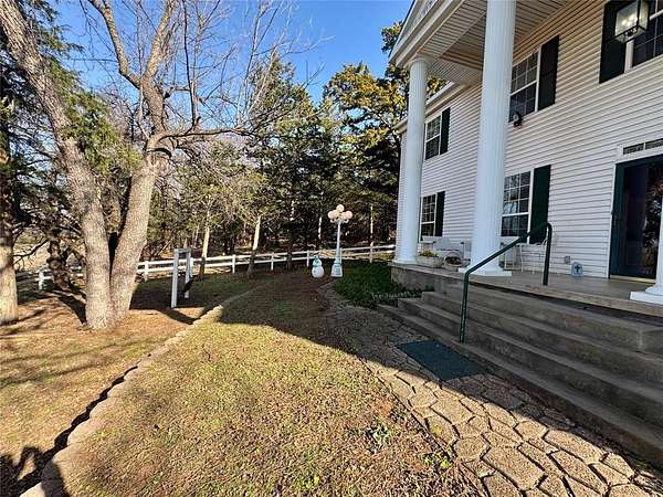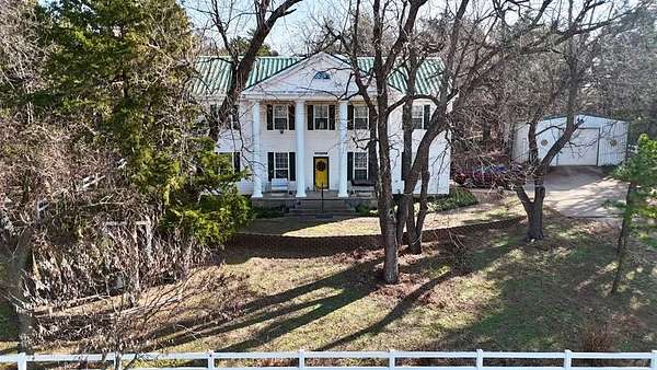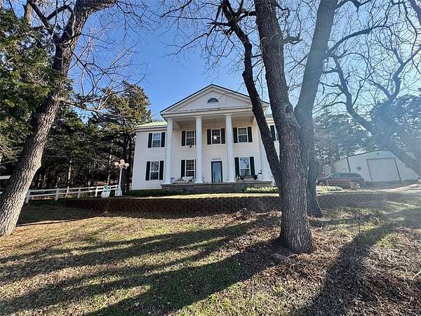 Looking for your place of tranquility in Oklahoma? This antebellum estate is nestled on an expansive 80-acre paradise. With nice pastures and plenty of canyon for wildlife. You have your own stocked fishing pond!, The beautiful three-bedroom, three-bath colonial home offers timeless charm surrounded by nature's serenity. Thoughtfully designed with classic architectural details, the home features spacious living areas filled with natural light, creating a warm and inviting atmosphere. 9 foot ceilings and quartz counter tops throughout. Home has a modern geothermal system and 6 inch exterior walls. Built for comforter and affordability. From peaceful mornings overlooking the landscape to cozy evenings indoors, every space is crafted for comfort and connection to the outdoors. The outdoor front porch and back deck are great escapes. There is an above ground storm shelter, 24x30 shop and beautiful vinyl fencing. Pride of ownership is evident throughout, as this well-built home has been lovingly maintained by a single owner and showcases quality construction at every turn. Solid craftsmanship, durable materials, and careful attention to detail provide lasting value and peace of mind, making this residence as dependable as it is beautiful. The country kitchen will include all the whirlpool stainless appliances and has great flow to the dining room. The property is a true retreat, complete with a picturesque pond and abundant wildlife that create a sense of privacy and tranquility rarely found. Built with expert hands and attention to every detail. Whether you envision running a few head of livestock, hunting, or fishing this home offers so many options. Private drive and workshop provide plenty of parking. Abundant wildlife and hunting opportunities The mature trees provide great habitat and a nice windbreak. The area is growing and you are minutes from I 40. A rare find in Oklahoma - make your appointment today!