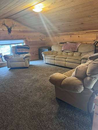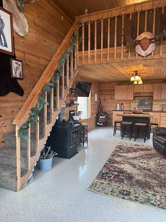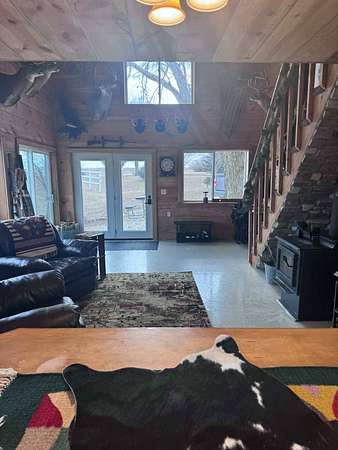 Escape to your own peaceful get away approximately 2 miles north of Schaller on 2.7 acres m/l scenic acres. This charming overlooks a beautiful 1/2 acre pond fully stocked with bluegill, large mouth bass, black crappie, and sunfish-perfect for swimming, fishing, or simply enjoying tranquil water views. The also features an updated sand and rock lined beach, with newly added fish structures. This property provides a wonderful spot to launch a kayak or spend long Summer days by the water and evenings by the fire. This property is surrounded by mature trees that create a private, park like setting including 4 mature apple trees, 1 producing cherry tree, a variety of pines and maples, and two very stunning weeping willow trees that adds exceptional beauty and shade. Inside, the cabin blends rustic charm with thoughtful updates. Stay warm and cozy in the middle of Winter with the wood-burning stove, and enjoy recent improvements including a newly finished epoxy floor on the lower lever, brand new carpet on the lower level-brand new carpet on the steps and in the loft, all new windows, exterior doors, and sliding doors throughout. The cabin also offers plenty of cabinet space for storage, making it easy to keep everything organized for weekends stays or extended visits. This off-grid retreat is powered by a generator, and the outhouse has been recently remodeled. A well is located on the property (conditions is unknown), of offering additional future potential. Whether you are looking for a weekend escape, hunting and fishing basecamp, a place to offer as a weekend getaway rental, or a quiet place to unplug and reconnect with nature, this unique property offers privacy, natural beauty, and endless possibilities.