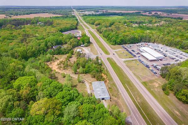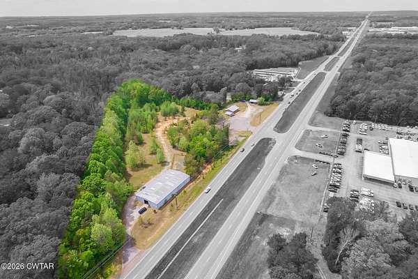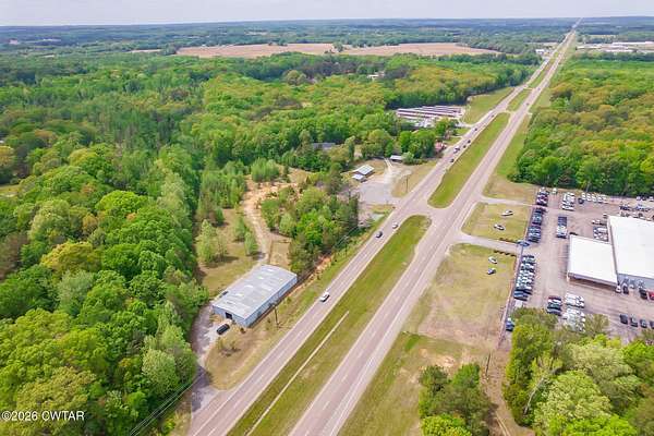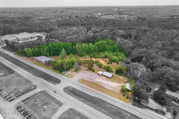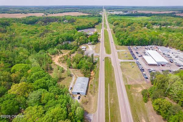 Prime commercial opportunity in a high-visibility location on US Highway 45 Bypass in Henderson, TN. Situated directly across from the Ford dealership, this 8.7-acre tract offers over 1,000 feet of road frontage along one of the area's most heavily traveled corridors, providing exceptional exposure and accessibility. The property is improved with an existing office building, two separate garage buildings, and an approximately 8,000 sq ft warehouse featuring built-in office space-offering immediate functionality for a variety of commercial or industrial uses. Located within close proximity to major thoroughfares connecting Madison and McNairy counties, this site benefits from strong daily traffic counts and continued growth in the surrounding area. The combination of substantial acreage, existing infrastructure, and premier frontage makes this an ideal opportunity for investors, owner-users, or developers seeking a strategic commercial location in Henderson. - Black and white photo is not the exact representation of the property line