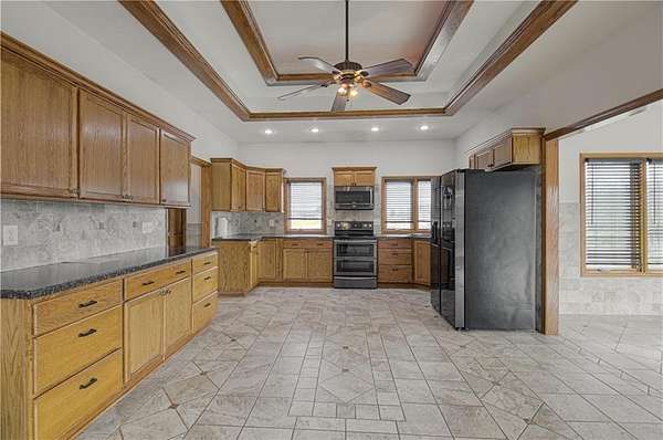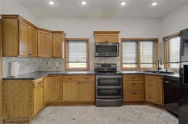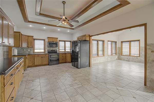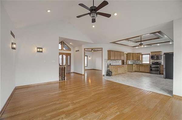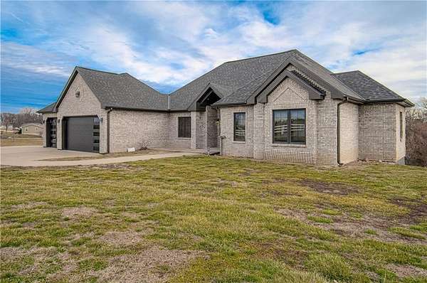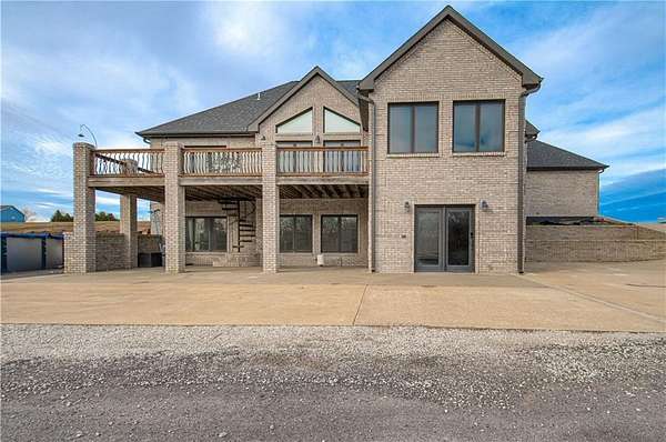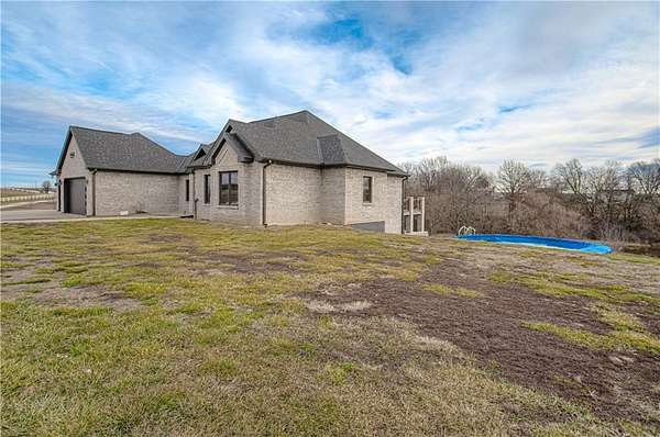 Beautifully situated on nearly 2.5 acres, this thoughtfully designed home offers privacy, scenic views, and refined comfort. The exterior features classic brick construction, charming architectural arches, and a brand-new roof. Inside, enjoy 9-foot ceilings with vaulted ceilings in the main living area, creating an open and elegant atmosphere. The main level includes two bedrooms and a dedicated office, along with generous living and dining spaces and a three-car garage. The finished basement provides additional living quarters with two bedrooms-one conforming and one non-conforming-plus ample storage, offering flexible functionality. Outdoor living shines with a brand-new composite deck, hot tub hookup beneath the deck, new concrete surrounding the home, abundant parking space, and a new above-ground pool. The property also includes access to a shared, stocked pond with ramp access for kayaks and canoes. A rare blend of serene acreage, modern upgrades, and timeless design-this property delivers elevated living with a peaceful, retreat-like setting.
