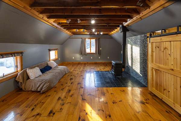 Nestled on a private 10.6-acre lot and set well back from the road, this intentionally built and well-maintained contemporary style home is a true gem, offering a rare blend of quality craftsmanship, natural beauty, and sustainable living. Designed and constructed by the current owners, the home reflects years of thoughtful planning and pride of ownership throughout. The land is a homesteader's dream, featuring a large spring-fed pond, mature organic gardens, fruit trees, and established plantings that sculpt the landscape and allow new owners to immediately enjoy the benefits of years of dedicated stewardship. Inside, the open sun-soaked layout is enhanced by passive solar design. Enter through the attached two-car garage into a generous mudroom ideal for Maine living. The spacious kitchen offers quality appliances, granite countertops, and a pantry, flowing seamlessly into the main living space where a Homestead cookstove and slate chimney provide warmth and passive heat upstairs. The living room opens to a newly built south-facing deck, perfect for enjoying the surrounding nature. Upstairs are two bedrooms, a bonus office or craft room, a loft nook previously used as a third bedroom, and a spacious bathroom with a custom tile shower and soaking tub. Just before the bonus room above the garage, a beautifully custom-built sauna offers a relaxing retreat aEUR" perfectly paired with refreshing dips in the spring-fed pond year-round. Beyond, the expansive room above the garage features warm wood floors, a wood stove, ample storage, and the option for a separate entry, providing flexible living space for guests, work, or relaxation. Two outbuildings and an attached greenhouse support gardening, storage, and year-round projects, including a detached heated barn/shop ideal for tinkering or creative pursuits. This carefully curated property offers peaceful country living with easy access to Belfast, Waterville, and the Route 3 corridor.