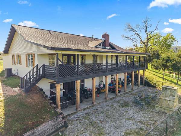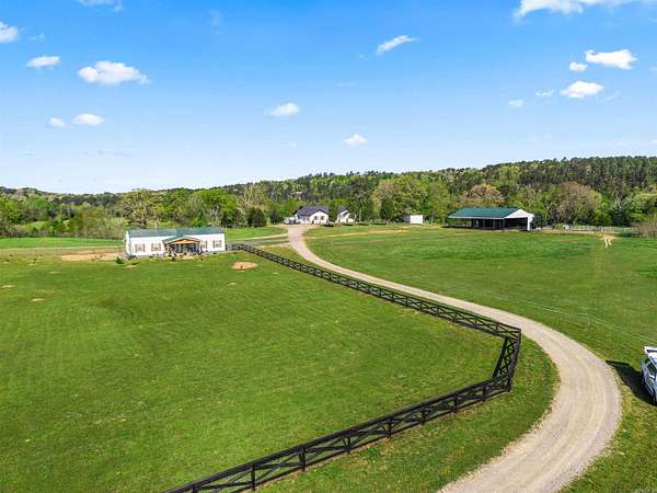 Where the Ouachita River meets refined country living. 81.87+/- acres of stunning riverfront land in Mount Ida, AR — gated entry, cross-buck wood fencing, rolling pastures, and mountain views. COMPLETELY REMODELED MAIN RESIDENCE (4,340 sq ft | 6 bed | 3.5 bath) features a vaulted great room with floor-to-ceiling stone fireplace, chef's kitchen, formal dining, sunroom, primary suite with French doors to the wraparound deck, and a stacked-stone outdoor fireplace. A finished walk-out basement apartment (2 bed | 1 bath) with its own full kitchen offers incredible flexibility. THE LUXURY BARNDOMINIUM (1,800 sq ft | 2 bed | 2 bath) has a full granite kitchen, shiplap fireplace, and spa rainfall shower — built-in rental income on the river. A 2,800 SQ FT UNFINISHED BARNDOMINIUM shell is framed, insulated, and wired for your vision. The 2024-BUILT EQUESTRIAN BARN (5,184 sq ft) includes 4 stalls, tack room, wash bay, hay storage, and covered riding area. Four self-contained living spaces. One irreplaceable riverfront estate. Live the life. Own the river.