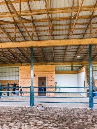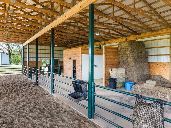 - Barns/Buildings, Cattle, Covered Patio, Dog Run, Fully Fenced, Guttering, Horses, Livestock Allowed, Screened Porch, Shop, Stables, Wood Fence