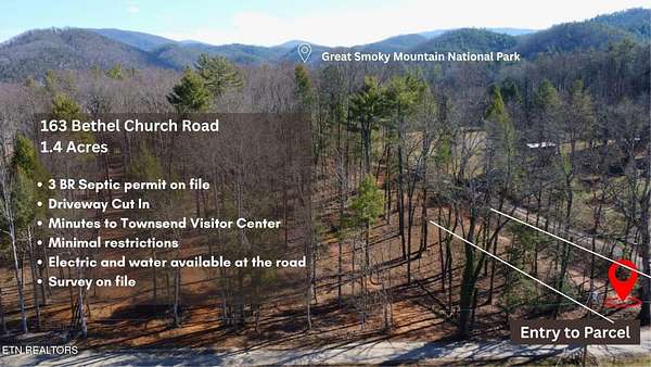 Experience refined mountain living on this rare 1.4-acre homesite in Townsend, Tennessee-where every day begins in the heart of the Smoky Mountains. Thoughtfully prepared for your dream residence, this property features a partially cleared landscape, a cut-in driveway, 3-bedroom septic mapping (2 locations mapped for your potential building site), and utilities at the road, allowing you to begin building with ease. Tucked amid mature trees that ensure privacy, yet offering the option to open up by removing additional trees in the back for better views, the setting strikes the perfect balance between seclusion and beauty. Minimal restrictions allow you the flexibility to design a custom home or barndominium, while still preserving the lifestyle of 'The Peaceful Side of the Smokies.' Located minutes from the Townsend Visitor Center, shopping, dining, and the Little River, this property also offers direct access to the Townsend Historic Trail, ideal for scenic walks or cycling through the heart of this mountain town. With the Great Smoky Mountains National Park only moments away, every adventure is at your doorstep. Whether you envision a serene retreat, a second home, or a legacy property to pass down for generations, this extraordinary homesite presents a rare opportunity to create your own Smoky Mountain escape.