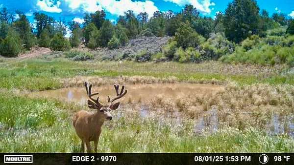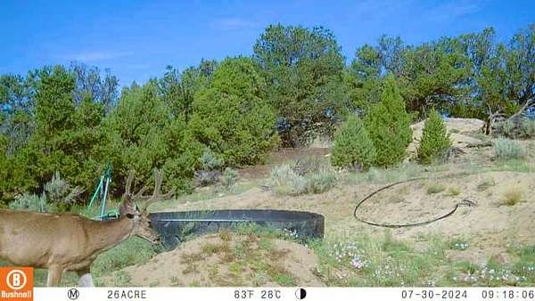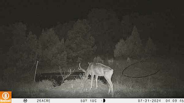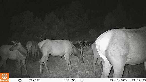 Tucked behind a timber pocket, the food plots on this property are already planted and frequently visited by both deer and elk. A productive well pumps into a year-round water trough, carefully maintained to support local wildlife.