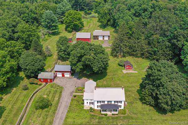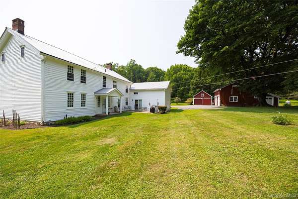 Historic Colonial charm meets modern potential. Built in 1804 and set on 5.1 picturesque acres, this 3,376 sq ft home offers 4 bedrooms and 3 full baths. Inside, you'll find multiple fireplaces and a working Dutch oven that brings old-world character to the heart of the home. Expansive living spaces and period details blend seamlessly with opportunities for your personal vision. Outside, enjoy a large detached garage, multiple barns, and outbuildings--perfect for hobbies, storage, or creative pursuits. Surrounded by a pond, rolling lawns, mature trees, and a serene country setting, this unique property invites you to craft the lifestyle you've been dreaming of.