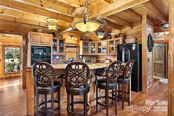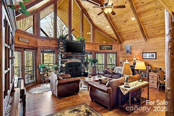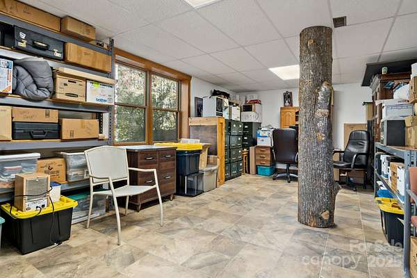1 HOUSE and 1 OFFICE Bldg on approx 12.1 ACRES. The house has a beautiful open design (2,683 sq ft) with log siding and rock exterior. The main floor has a great room, kitchen, dining area, sunroom, laundry room, 2 bedrooms and 2.5 baths. The upper floor features a loft and studio room which is currently being used as a spare bedroom. A finished basement under part of the house is perfect for an office/workout room. A detached garage is connected to the house by a covered breezeway. A new roof was just installed in July 25'. The freshly painted, covered front porch is the perfect place to host gatherings! The office building, 900 sq ft, is ready for a variety of applications. It includes a lobby area, a receptionist space, a small lab area, 5 offices and 2 restrooms. Much of the property is fenced, and there is a run-in shed/storage barn that is perfect for horses/goats. Included are several fruit trees and a large blueberry patch with over 200 bushes. There is over 360 ft of boundary with the US Forest Service. A 20 minute hike out the back gate leads to the 'Mountains to Sea Trail'. This is a breathtaking property!