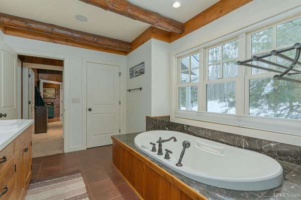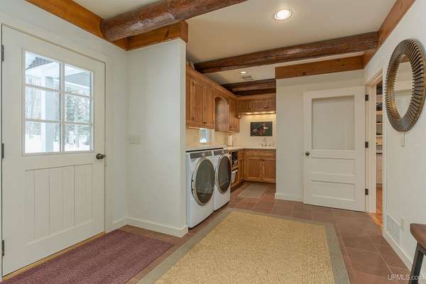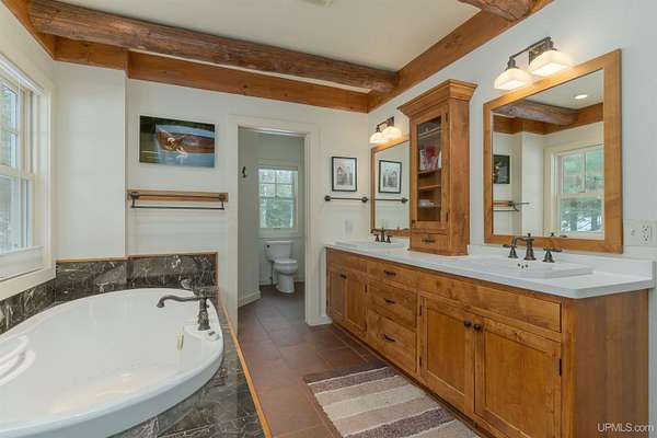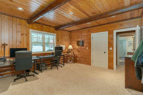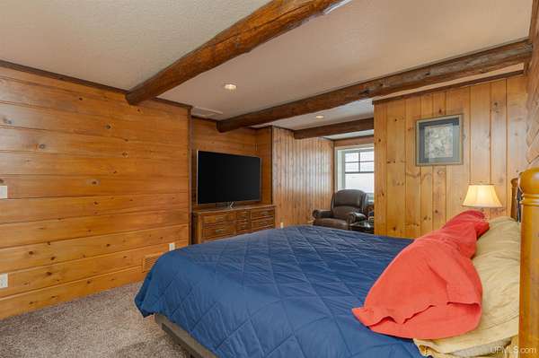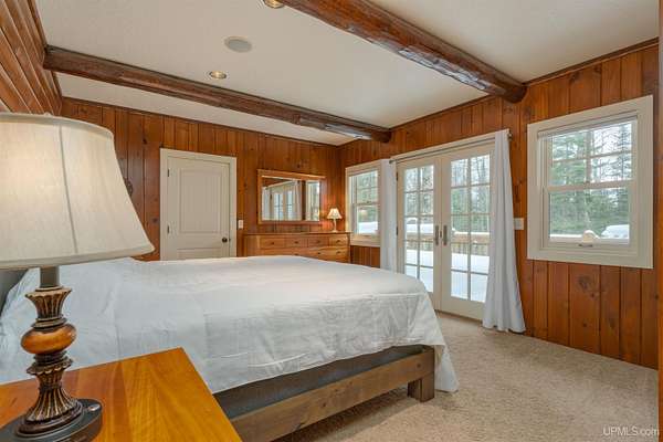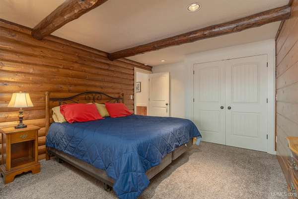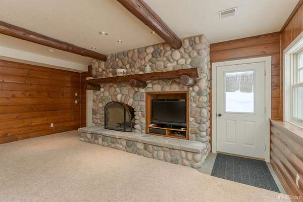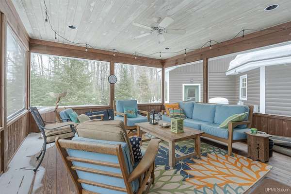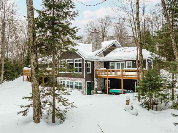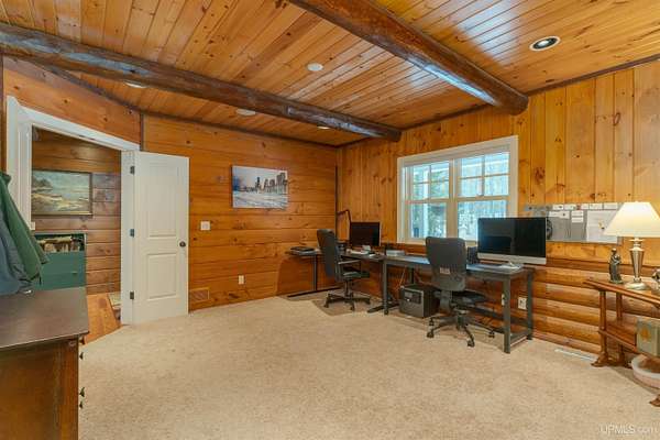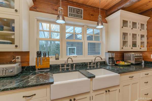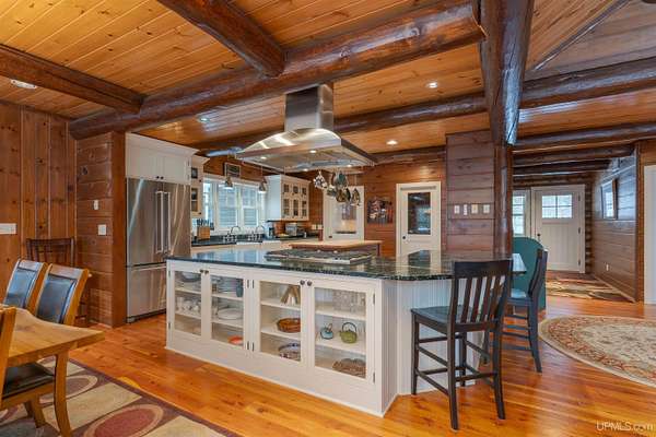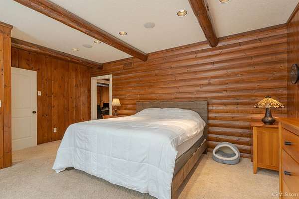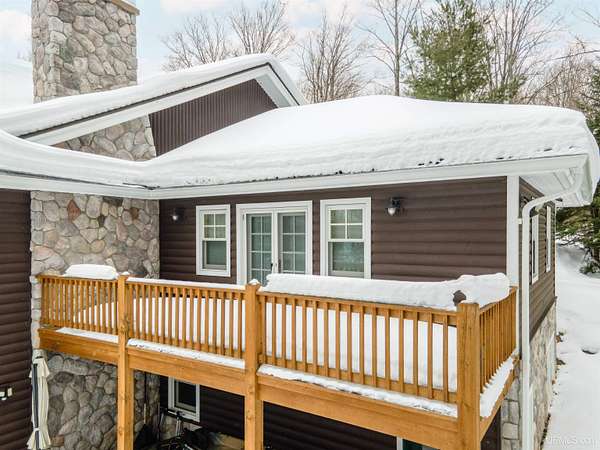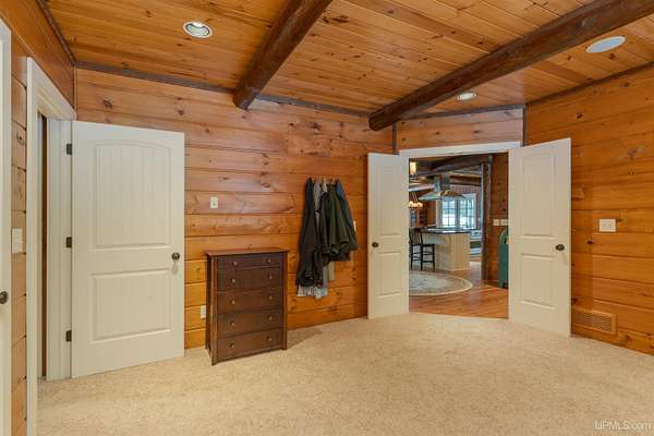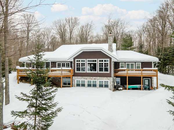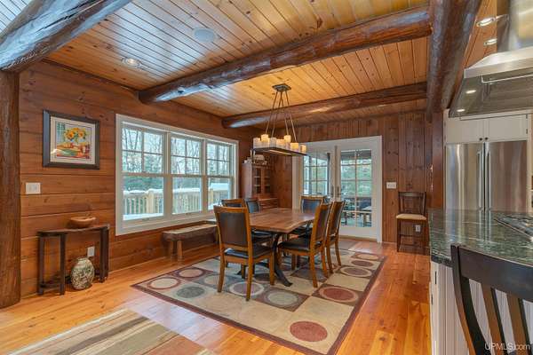 This spectacularly unique custom built 4 bedroom, 2.5 bath home on well over 5 acres was constructed with pride, passion and great attention to detail. Encompassing nearly 4,400 square feet of luxurious living space, that starts with the 2-car attached garage leading to the laundry/mud room with ample storage and half bath. From there, enter the custom kitchen that every chef would love, with soapstone countertops and plenty of room to entertain - you may never want to eat out again - plus walk-in pantry for all your storage needs. Living and dining rooms are adjacent as well as a bonus screened porch with access to the large deck that's a great place to enjoy beautiful mornings enjoying coffee or gathering for after-dinner drinks. There are 2 beautiful stone woodburning fireplaces, one on the main level and one in the family room in the walkout lower level. Log beams adorn the ceilings, and you have gorgeous hand-sawn wood floors throughout the home. There are 2 main floor bedrooms, one being a primary suite with ensuite, including walk-in tiled shower, spa bath, and dual vanity sinks. The lower level has two bedrooms with another large bath. This home even has a large walk-in sauna! The exterior is beautifully landscaped with a walking path down to the water. There are so many more amenities than your average waterfront home! 153-acre Homan Lake is a private lake and reaches depths of about 35 feet. It's also no-wake, so it's ideal for fishing, kayaking, canoeing, and swimming. Homan Lake's east shore is the serene neighborhood of "Waasanoode," the Ojibwa term for "Northern Lights." This private location displays them most beautifully across a dark, starry sky with no light pollution to detract from your view. Facing west, the residences along this shoreline have spectacular sunset views. Each parcel is spacious and deeded covenants maintain the integrity of this lake community.