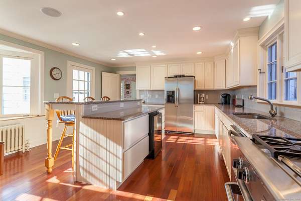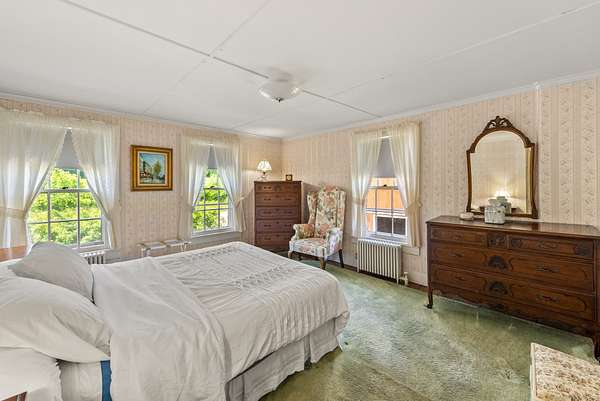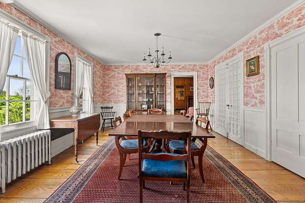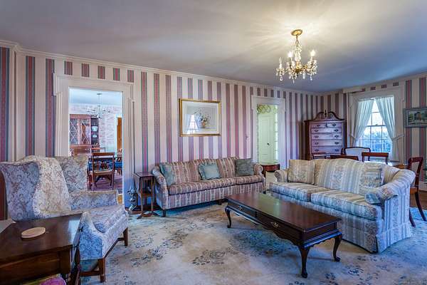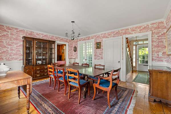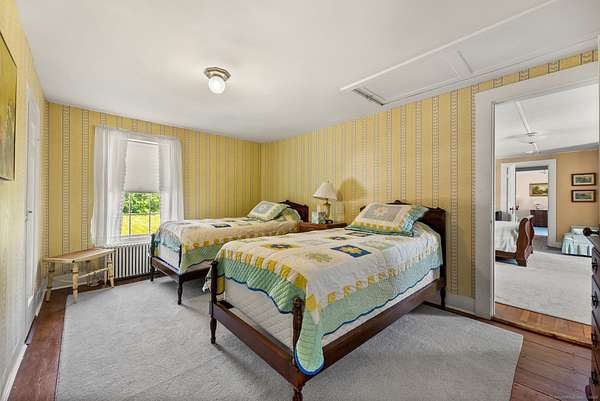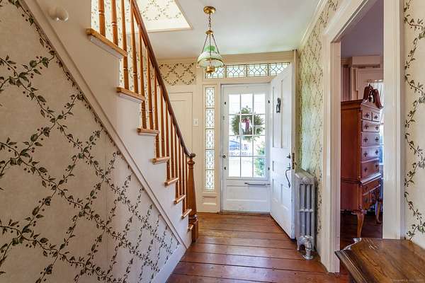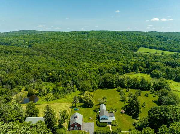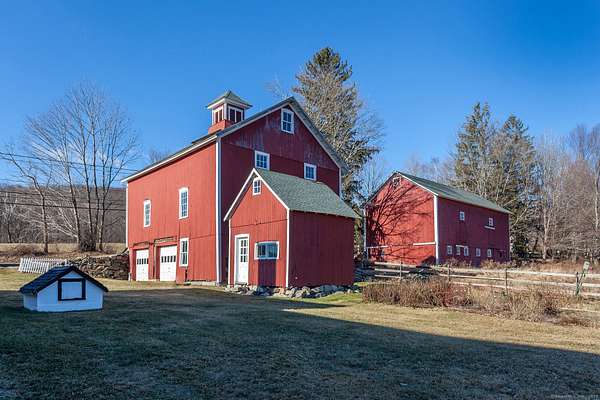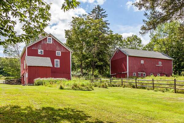 Historic Elegance Meets Countryside Charm in Warren, Ct Nestled within the picturesque expanses of Litchfield County, this magnificent 4-bedroom, 2.5-bath home is a testament to timeless beauty and modern convenience. Set on a sprawling 41-acre estate, this Greek revival style home is proudly listed on the Connecticut Historic Register, offering a blend of rich history and updated country living. Entering the home there is a generous sized living room and dining room with period details including crown moldings, fireplace and hardwood flooring. The updated kitchen is light filled. With s/s appliances, granite, gas range, and breakfast bar, buffet/coffee area and hardwood flooring. The light filled den or office offers outside access. The second floor there are 4 bedrooms, 1 full and 1 half baths plus sunny bright rooms, hardwood flooring, period details and some with great views of the property. The estate's two large barns and chicken coop present endless possibilities for a hobby or vegetable farm. This can also be horse or cattle property. Beyond the home, the property's open fields and farmland offer panoramic views and an idyllic setting for outdoor activities. Step outside to the screened porch or patio and bask in the serenity of your private orchard, where apples, pears, and raspberries and more await your touch. A tranquil pond, wildflowers, rolling fields, hayfields, and beautiful trees are an abundance of nature all around.