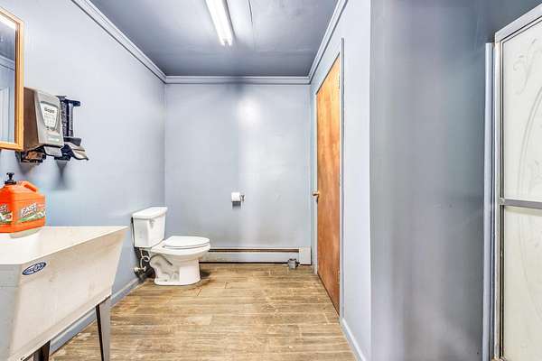 Incredible opportunity to own a well-maintained, metal-frame warehouse situated on 5.1 acres along Main Road North in Frankfort. This expansive building offers clear span construction with a 22' eave height and 25' peak, ideal for contractors, mechanics, fabricators, or business owners in need of serious space. Features include three drive-thru overhead doors, radiant floor heat, and a primary heating system powered by an external wood-burning hot water furnace, with an oil-fired backup on site. The building is fully insulated, in excellent condition, and move-in ready. Power is available at the road, and three-phase power is nearby. Conveniently located just 20 minutes from Bangor and I-95, this property combines functionality, space, and strategic location for a variety of business or personal uses.