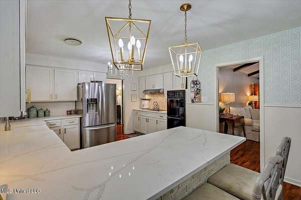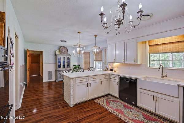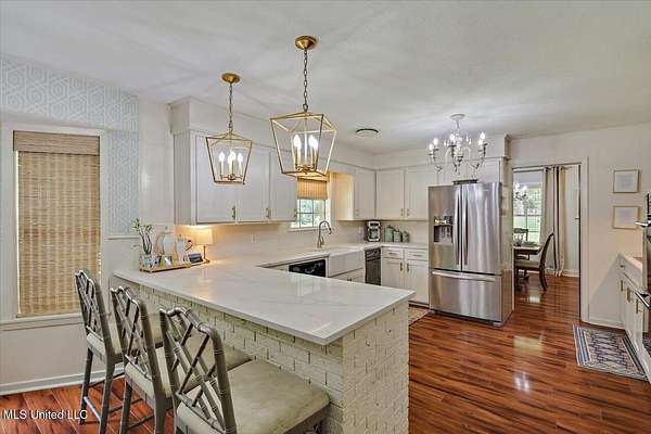 BRAND NEW HVAC SYSTEM INSTALLED!!! Nestled on a serene two-acre lot with convenient access to Highway 49, this stunning four-bedroom, two-and-a-half-bath home offers a perfect blend of modern elegance and comfortable living. The recently renovated kitchen is a chef's dream, featuring quartz countertops, gold accents, bricked accents at the eat in bar, and a spacious pantry area with room for a freezer. Adjacent to the kitchen, you'll find a formal dining room, as well as a breakfast area, and an eat-in bar, providing plenty of space for dining and entertaining. The living area boasts a vaulted ceiling with beam accents and a cozy wood burning fireplace, creating a warm and inviting ambiance. The home also includes a versatile den, currently set up as a kids' space, and a welcoming foyer with French doors and brick pavers. Just off the main living area is a spacious outdoor living space that features a screened in porch complete with brick pavers overlooking a private, spacious and perfectly manicured yard. The master suite features private access to the back patio/outdoor living area, a large walk-in closet, and a spacious master bath with a vanity and walk-in shower. The generously sized children's bedrooms offer ample closet space and share a beautifully remodeled hall bath with a large vanity and linen closet. Additional highlights include a spacious laundry room with extra cabinetry, a well appointed half bath, a screened-in back porch perfect for outdoor gatherings, and an oversized carport with a large storage area. Don't miss out on this exceptional property! Schedule a private showing with your agent today-this home won't last long!