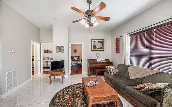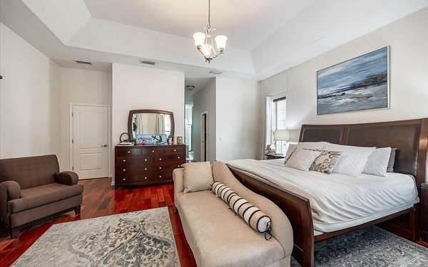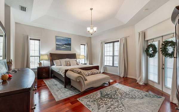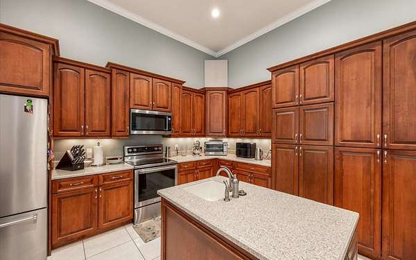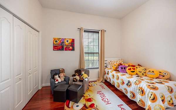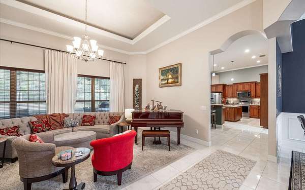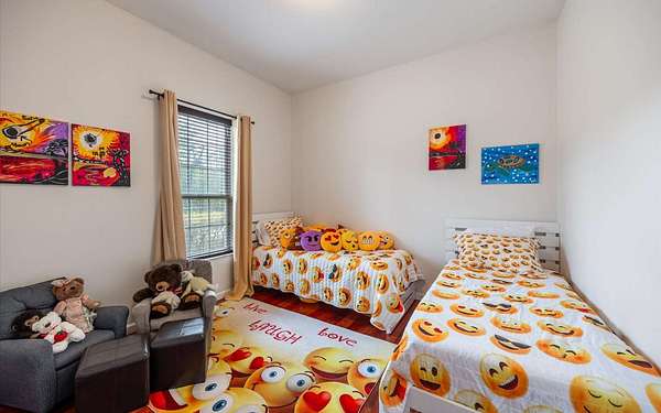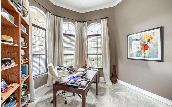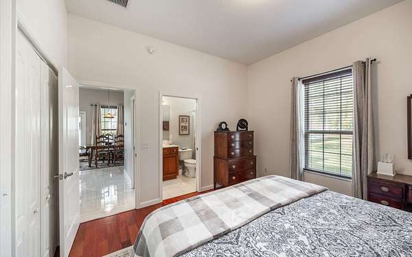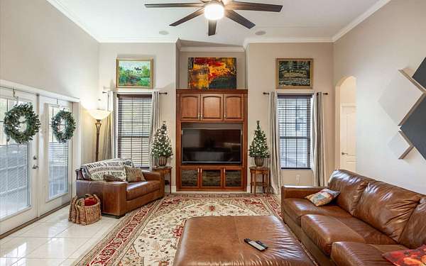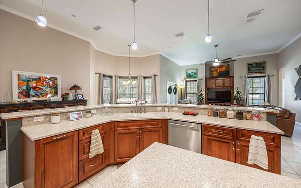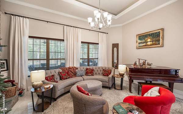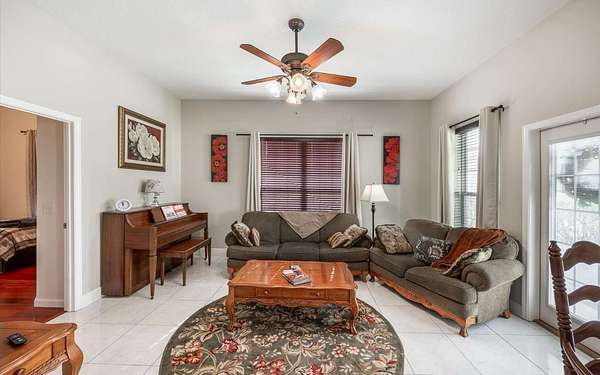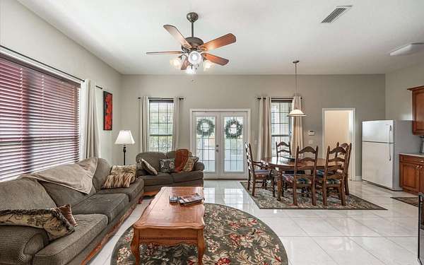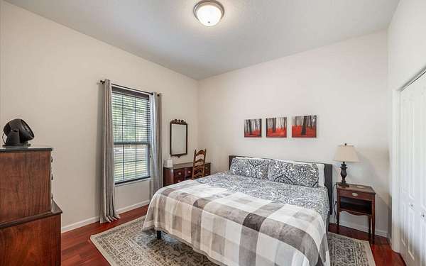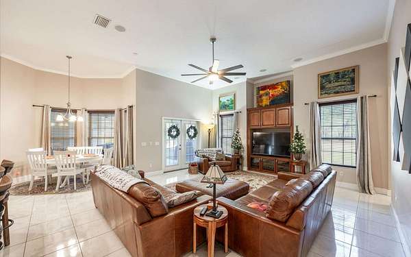 Tucked at the end of a quiet private cul-de-sac, this spacious estate offers room to live, entertain, and unwind on 4 picturesque acres--about half of which are already cleared. Deer frequently wander through the property, enhancing the peaceful, natural atmosphere. The main home includes 3 bedrooms plus an office and 3 baths, highlighted by 12-foot ceilings, a gas fireplace, and a surround-sound system with built-in acoustic panels. The primary suite stands out with a rare his-and-her configuration featuring two sinks, two toilets, two closets, and dual entrances to an oversized shower. For those who need ample storage or workspace, the property delivers: a 3-car garage plus an additional garage that can serve the apartment or function as a workshop, complete with its own half bath. Outside, a 40' x 16' RV pole barn with 50-amp service makes travel preparation effortless. Hardwood and tile flooring run throughout, and both kitchens and all baths feature all-wood custom cabinetry and solid-surface countertops. A standout feature is one of the largest screened porches in the county--an ideal place to relax beneath the shade of beautiful Live Oaks. This property offers a rare blend of privacy, practicality, and comfort, perfect for anyone seeking space, flexibility, and a serene country setting.