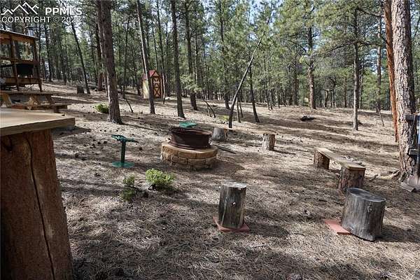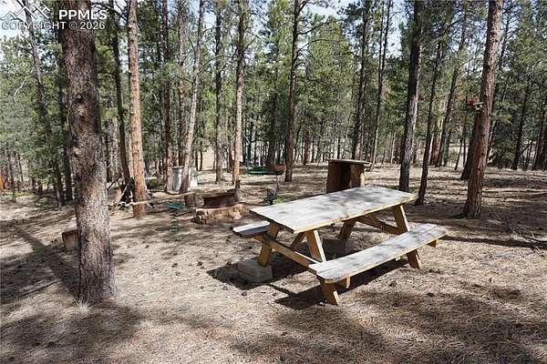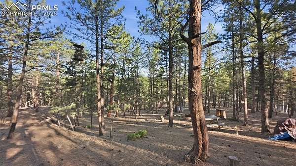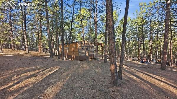 Are you ready for Summer, The Great Outdoors and Glamping? Your turn key mountain escape awaits on this lot where peace, privacy, and towering pines make every day feel like a getaway. Nestled in Florissant Heights, this beautiful 2-acre wooded lot with mature trees offers the perfect balance of seclusion and accessibility-just 40 miles from Colorado Springs, yet it feels a world away. Surrounded by nature, and at approximately 8600', this serene property is ideal for relaxing, unwinding, and escaping the heat, noise and lights of the city. Sold as vacant land, the property includes a charming 171 Sq. Ft. off grid, rustic cabin with a large 12 x 16 front porch, cozy wood-burning stove, and two built-in Murphy-style beds. Equipped with solar power and a generator, it's perfect for weekend getaways and glamping. Everything is ready for you so that you can show up and start enjoying the outdoors with a firepit, picnic tables, seating and an outdoor powder room already in place. The Florissant Heights Community also features a pond and warming hut/picnic area. Zoned R-1M, you have the flexibility to bring in a mobile home or build your dream home on this scenic lot. There are electric poles near the rear of the lot. Florissant Heights has a voluntary HOA and covenants. Information can be found. Available documents also attached to this MLS listing, PLEASE review prior to making an offer. Property is sold AS IS as part of an estate and will be conveyed at closing via a Personal Representative Deed.
