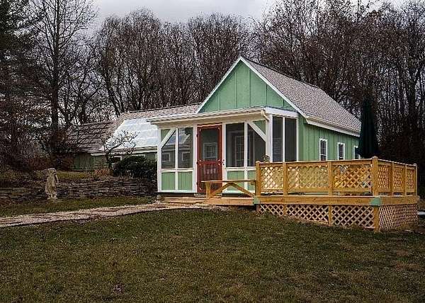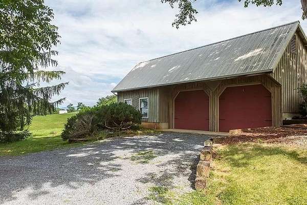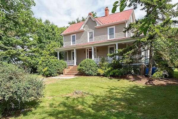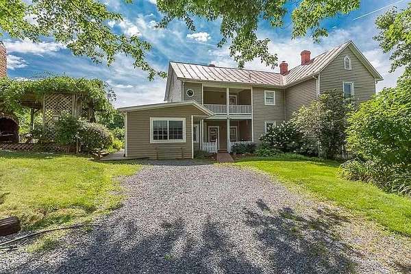 Storybook Farmhouse on 2.2 Acres, which includes 3-bedroom, 3-bath, plus additional bonus rooms - this versatile property offers strong potential for rental or supplemental income. Enjoy the beautiful pastoral views and a welcoming wraparound porch. Inside the main house, you'll find hardwood floors throughout, a parlor with wet bar and built-in bunk, a spacious primary bedroom with balcony porch and clawfoot tub, and a large laundry area. The kitchen offers 2 individual sinks, Corian countertops and an impressive 32ft of counterspace with warm Hickory cabinets. Comfort is ensured with a 2-zone heat pump. Outdoor living is effortless with a veranda featuring an outdoor fireplace and hot tub. The detached 2-car garage includes a heated workshop. You'll find a separate cottage that offers a bedroom, bathroom, kitchenette, and attached greenhouse with its own cistern. The Greenhouse provides supplemental passive solar warmth in addition to the cottage's main heating system. The cottage also features a screened in porch and two-tier deck. Relax, unwind, and take in all this home offers--serene surroundings, gorgeous views, quiet corners, and plenty of space to spread out, breathe, and make every day feel like a storybook.