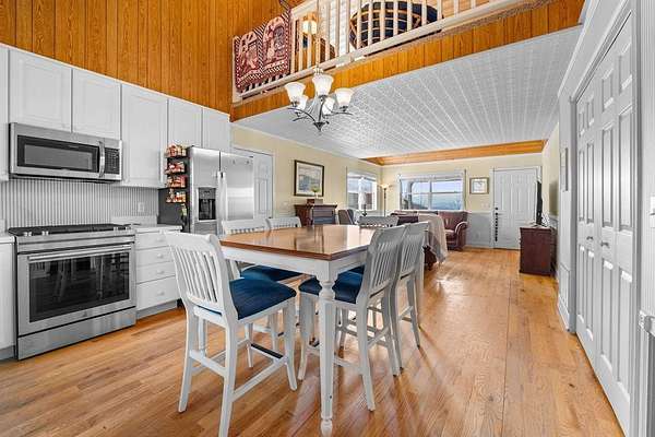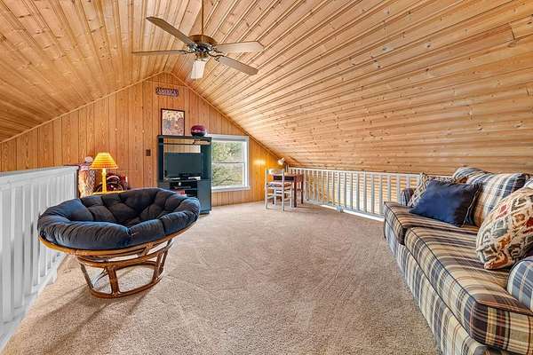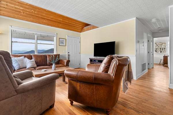If you want views, this is the home for you! Westward facing for GORGEOUS sunsets! Wheelchair accessible into the 1st floor of home. Large Screened in front porch with a porch swing already installed so you can begin enjoying the view immediately. Main level living with a Primary and ensuite. First floor also boasts a half bath, bedroom and office. Open floor plan with an eat-in kitchen on main floor, as well as an attached two car garage. Upstairs has a loft area and an additional unheated space for storage or easily add heater for extra sleeping options(comes with window a/c unit). This property has underground power, multiple blueberry bushes, a usable yard for a garden, a firepit and at least one other building site available! Since 2019 the owner has installed new appliances, new water heater, A/C and Roof. Gas Log fireplace will convey. Kitchen features brand new Gas stovetop with Electric Oven. Each Resident is responsible for their own portion of the road. There is no formal agreement for shared road maintenance, but most residences pull together to pay for road work as needed, typically once a year or two. Two Bedroom septic but lots of extra space!