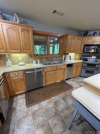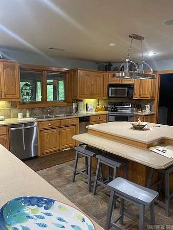 Beautiful Lake Ouachita off Twin Creek Rd. Free public boat ramp. Private boat ramps 1.5 miles. 21 acres m/l. Land borders Core property to take on 2 sides. Many hardwoods, Dogwoods. Spring fed creek & old silver mine on property. Buildable house sites. Underground electric. Approx. 3,000 sq ft built 2000. 4 bedrooms, 2 full bathrooms and 2 half bath. Separate bedroom and 1.5 bath above garage. Geothermal heat and air & floor heat. Generac propane generator. 20 foot ceiling in great room. Large hearth stone fireplace with Extraordinair blower. Outdoor kitchen and large wrap around deck with composite floor deck. Hot Springs brand hot tub new Spring 2024. Shop 20ft and 30ft. bathroom, 8ft/10ft. 3 garage doors, 2 front 1 back. 2 exterior doors in shop. 3/10 mile asphalt private entry drive with security gate.