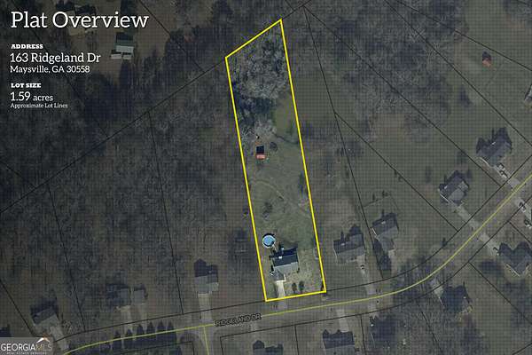 From GA-52 in Maysville, turn onto Yarbrough Ridgeway Rd. Continue about 1-2 miles, then turn left onto Ridgeway Church Rd. Drive about 1 mile and turn right onto Ridgeland Dr. 163 Ridgeland Dr will be on your left.