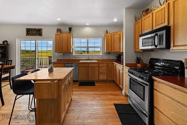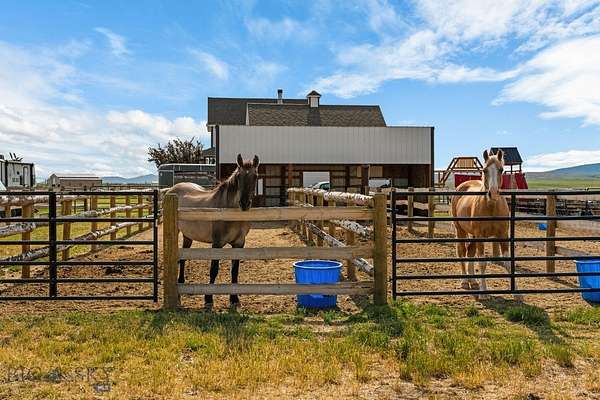Seller concession of $15,000 offered to Buyers at closing. Welcome to this beautifully finished and updated 6.13-acre horse property in the scenic and sought-after Three Forks area. Built in 2005, this 3,289 sq ft home offers a perfect blend of comfort, functionality, and panoramic mountain views. The property is set up for horses with perimeter fencing, an arena, round pen, and a loafing shed with individual runs. Inside, the main level features 1,444 sq ft of living space, including the primary bedroom with en suite bathroom, kitchen, dining area, and living room (with a double sided fireplace) all designed for easy, single-level living. Gorgeous circle-sawn hardwood floors and a durable Trex deck add rustic elegance and low-maintenance appeal. Upstairs, you'll find three additional bedrooms and a full bathroom offering plenty of room for family or guests. The fully finished 1,128 sq ft walk-out basement includes a private one-bedroom, one-bath apartment with its own separate entrance, kitchen, laundry, and living area, ideal for multi-generational living, or guest quarters. A high-producing 70 GPM well ensures reliable water for household and livestock use. Just minutes from the conveniences of Three Forks, this property provides the serenity of rural living with quick access to fishing, hiking, and boating within close proximity to the Jefferson, Gallatin & Madison Rivers or a quick drive to Canyon Ferry Lake. Just a short drive to Bozeman and Yellowstone International Airport. This is a rare opportunity to own a move-in-ready Montana horse property with space, views, and versatility. Video & audio recording Ring Cameras on house.