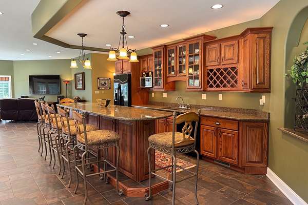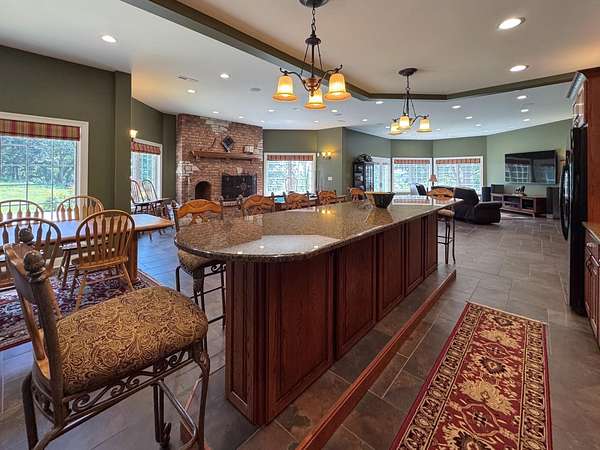 One of the most stunning properties available! 7200 Sq. Ft. of custom craftmanship! One of a kind! 4 plus bedrooms, 5 baths, 3 spectacular fireplaces in (Great Room, Master Bedroom & LL Rec Room) - Located just 2 miles east of Historic Oregon, IL. off Rt 64 - Nestled on a private wooded lot - 6 car garage with (flex-core floor) 3 car +3 car under, (both heated) - main floor has Brazilian Cherry flooring, Breathtaking Gourmet kitchen with detailed Custom Cherry cabinetry, Granite countertops. double oven & so much more!! Great Room with One of a kind 20' coffered ceiling, stately floor to ceiling stone fireplace (a must to see!) Large main floor master bedroom suite with fireplace, private deck overlooking beautiful back yard, large walk in closet, whirlpool tub and large walk in ceramic tile shower & double vanity - main floor library with custom wood tray ceiling - Sun Room with Unique Barrel Ceiling - Abundance of LED lighting throughout - Upon entering you're greeted with a beautiful custom built winding staircase leading to the upstairs bedrooms with a Jack & Jill bath and a large bonus room, balcony overlooks Great Room - Huge Breathtaking LL recreation room with 15 windows, 4th bed, full bath, second kitchen, work out room, 3 zoned radiant heated ceramic tile floors, 9.8' ceilings, beautiful stone & brick fireplace, Custom impressive Bar, great for entertaining, leading to a cozy 3 season porch - Surround Sound inside/outside, security system, central Vac, Newer on Demand Water System, 2 furnaces with 7 zoned heating- 2 newer composite decks and rails, Impressive brick courtyard - Newer Roof, gutters, gutters guards and downspouts. Only 27 minutes to the Rockford Airport!! So much more!!! Don't miss this one!!!