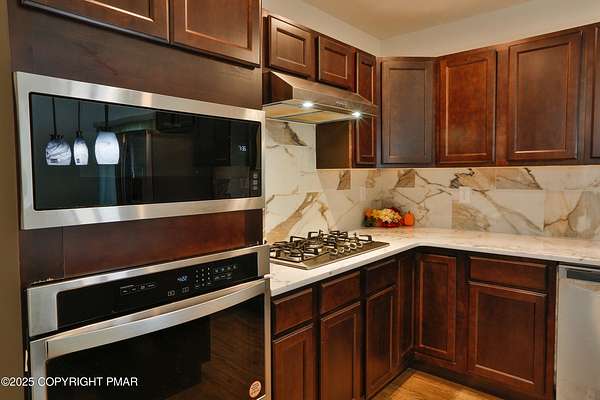- Dishwasher, Electric Oven, Microwave, Propane Cooktop, Range Hood, Refrigerator, Stainless Steel Appliance(s)