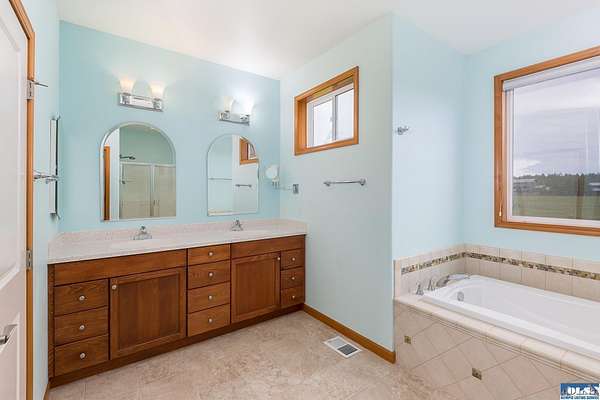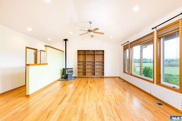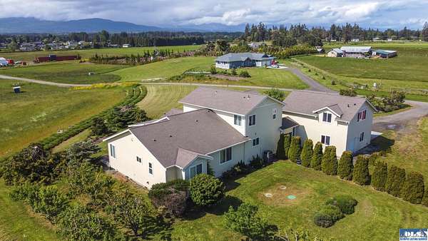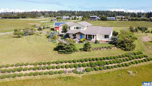 Incredible, sweeping Olympic Mountain Views from this home on five acres, including 300+ mature lavender plants and many fruit trees!! Entry has a South-facing view deck; and a deck off the primary bedroom. These decks span the main length of the home & are partly covered. Two bedrooms, including the primary, living w/pellet stove, kitchen, pantry, large dining, laundry & equipment rooms, 2 full baths & half bath are all on the main floor. Much of the flooring there is oak. Upstairs is an office or den w/covered view deck, a full bath, and the 3rd bedroom w/a good mountain view. 3rd bedroom has Brazilian hardwood flooring. Office or den has bar sink and laminate flooring. A breezeway connects the home and garage/shop, via the laundry room. There are 2 vehicle doors, an equipment door and two pedestrian doors. Driveway is double wide gravel, with a concrete pad. Above the garage is a large storage or exercise or craft room, with bamboo flooring, a 3/4 bath and ceiling fans. This room, by code, is unheated. The barn has concrete flooring, lighting, and plenty of room for vehicles, shop work, etc. There are vehicle, equipment and pedestrian doors. Besides the lavender and fruit tree trees, there are other landscape trees and flowers. Very pretty! Home is not far from abundant recreational opportunities such as Dungeness Landing (w/birding platform), the Dungeness Recreation Area and Spit, and Cline Spit w/small boat launch to enjoy Dungeness Bay. Also, not far from town! Shepherds Way is in the heart of the Sequim Rainshadow. Lots of sun here!