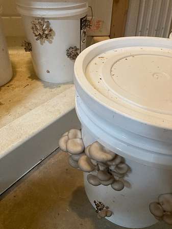 The main barn and shop include four stalls, a tack room, ample hay storage, dedicated mushroom growing room and a large chicken coop.
