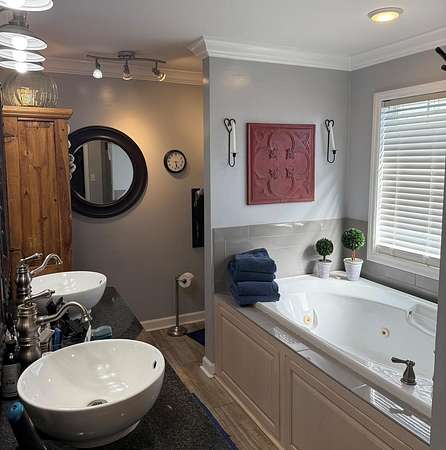 - Built-In Bookcases, Chair Rail, Crown Moulding, Granite Counter Tops, Hard Surface, Kitchen Island, Lighting Recessed, Pantry, Separate Shower Master, Sitting Area Master, Specialty Ceilings, Split Floor Plan, Surround Sound Wired, Walk-In Closets, Wide Baseboard