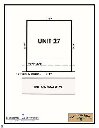 Vineyard Ridge is a premier new development where refined living meets natural beauty. Offering premium lots for sale in its third and final phase of the development, each ready for your dream custom home, designed and built by the renowned Rembrandt Construction. Known for timeless design, expert craftsmanship, and unmatched attention to detail, Rembrandt turns your vision into a legacy home. Nestled at the base of the Old Mission Peninsula, Vineyard Ridge offers the best of both worlds: tranquility and privacy, with the energy of downtown Traverse City just minutes away. Spend your mornings at local beaches, your afternoons exploring nearby vineyards, and your evenings dining at acclaimed restaurants just down the road. Life here is as effortless as it is elegant. Residents enjoy access to a resort-style pool, outdoor spa, grill stations, and a fire pit lounge, perfect for entertaining on warm summer nights. Across the road, the Pelizzari Natural Area offers serene wooded trails for morning walks or weekend hikes. This is more than a neighborhood. Its a lifestyle; tailored, timeless, and uniquely yours.