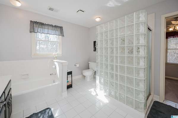 - Garden Tub, Recess Lighting, Separate Shower, Sitting Area in Master, Tub/Shower Combo, Walk-In Closets