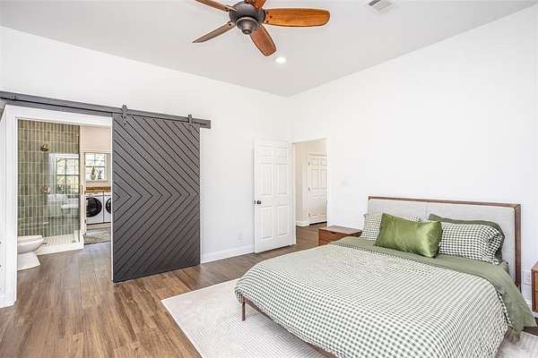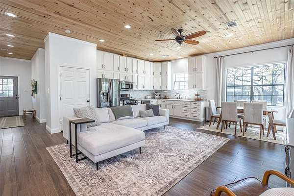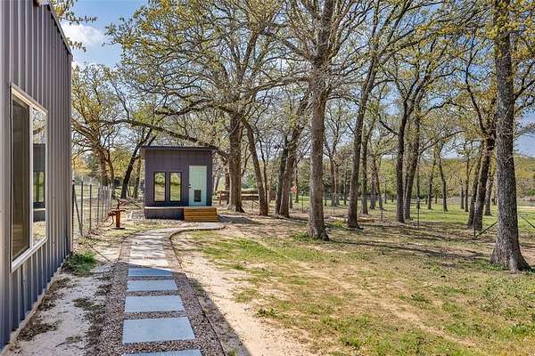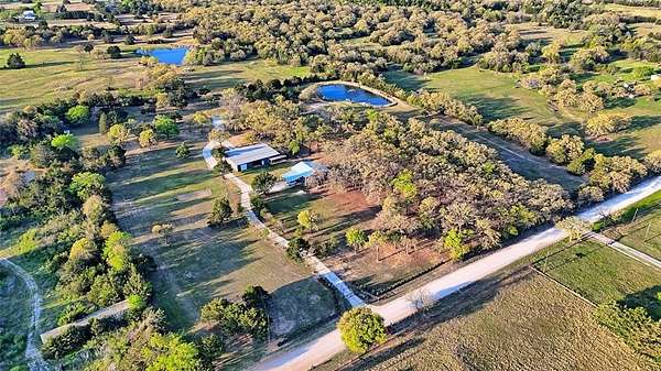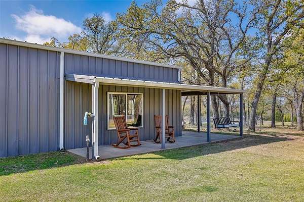PEACEFUL COUNTRY PARADISE BETWEEN WHITESBORO AND CALLISBURG! Turn-key and modernized, this 2bed, 2 bath 2018 Barndo on 12.97acres has been updated with so many modern touches, you've got to see it in person to believe it. Magazine worthy finishes such as floor to ceiling tiled walk in shower, clawfoot tub with shower, and black farmhouse chic windows. A huge 3,750sf partially insulated workshop features a bathroom, 3 bay doors, two mini splits in the smaller section and a 2 post car lift in the larger side. This shop is any man's dream and will fit all your toys, farm equipment and workshop projects. Not just one, but two covered porches will capture all the incredible country views; including the beautiful pond with water fountain feature and new gazebo add on. Fully fenced with an attractive, automatic gated entry; safety has been made a priority with the addition of a storm cellar, a safe room hidden in the primary closet and a security camera system that will stay. For the animal lovers, an oversized dog run has been added off the side of the shop featuring a decorative gravel & stone walkway that ends at the foot of a one of a kind, customized dog house equipped with built ins and a mini-split unit. A built in beverage refrigerator, 10ft ceilings, a double vanity primary bath, a custom walk-in primary closet and a utility room mud locker are just a few of the additional touches that make this property a stand out. Currently Bee Exempt with a 3rd party beekeeper, this property has a septic system, Pentex electricity, and has water supplied by Woodbine Water. Conveniently located between Whitesboro and Gainesville and a short 70 miles from DFW. Whitesboro ISD! This property is the perfect weekend getaway or the ultimate retirement ranchette.