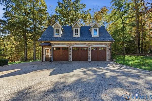 Welcome to this breathtaking stone-estate style home where timeless elegance meets modern comfort. Located on an expansive 3.4-acre lot, this 6-bedroom, 5 full-bath, 2 half-bath home offers the ultimate in luxury living. With an impressive combination of refined interiors, exquisite outdoor spaces, and unrivaled privacy, this home is designed for those who appreciate both sophistication and natural beauty. A main-level primary suite is your private retreat, featuring a spa-inspired bathroom with a claw-foot soaking tub, heated floors and steam shower. Rich hardwood floors flow seamlessly throughout the home, complementing the architectural details and creating a warm, inviting atmosphere. Entertaining is effortless in this home, with a formal dining room, a sun-drenched Florida room, and a gourmet kitchen equipped with a gas range, double ovens, and sleek cabinetry. Gather around one of two cozy indoor gas fireplaces or enjoy the outdoors on the oversized patio, which includes a built-in outdoor kitchen and stone wood-burning fireplace-perfect for year-round gatherings. This estate also offers incredible amenities for car enthusiasts, with a 3-car attached garage and a 3-car climate controlled detached garage that features a fully finished au pair/in-law suite. This space is ideal for extended family, guests, or a private workspace. Step outside and enjoy the serene, landscaped surroundings, including walking paths and a small peaceful creek, and plenty of open space for outdoor recreation. The property also features a synthetic slate roof, copper gutters, an irrigation system, and invisible fencing, ensuring both low maintenance and complete privacy. Set in a prime location, this home offers peaceful seclusion while still being conveniently close to major highways, shopping, dining, and top-rated schools. This is more than just a house-it's a lifestyle of comfort, luxury, and tranquility.