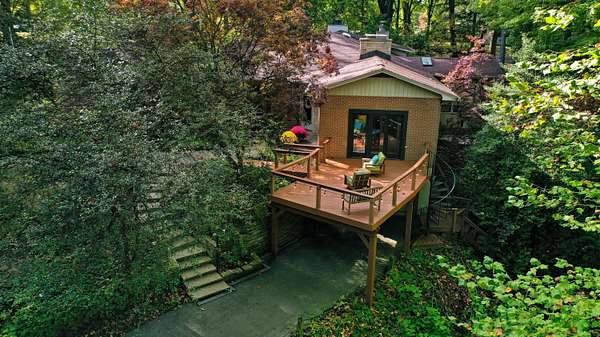 20 min to Notre Dame are Two Fabulous properties on Designated Trout Stream-Brown/Rainbow on Brandywine Creek with Seasonal Salmon/Steelhead Runs, Great Outdoor Spaces: Fire Pit, Woods and Zipline! Sprawling Craftsman meets Frank Lloyd Wright open concept, Great Room w/Brazilian Cherry Floor, New True Chef's Kitchen boasting Wolf Appliances, 3 Season Room, 4 bedroom, 3 Spectacular Purposeful baths; Primary Ensuite WI Jacuzzi Tub/Shower, Heated floors, Hall Bath Steam Shower, West Wing Bath WI Shower. Must experience the newer expansive composite decking/outdoors to appreciate the thoughtful design and refinements of this lovely home amid the wooded canopy acreage, complete with Bridge to the Island oasis across from Brandywine Creek Nature Trail Park. Price includes; Brick Guest House w/2beds, 1.5 baths, LL WO, garage. Turn one or both into an investment; Live/Rent Long or STR.