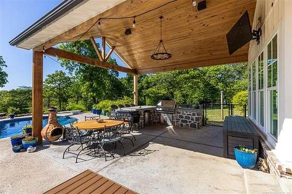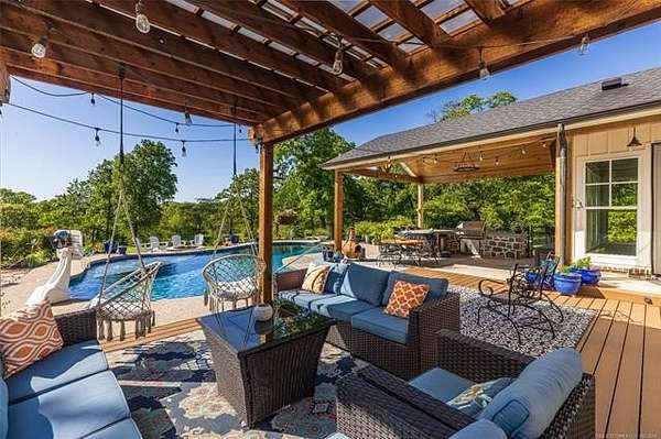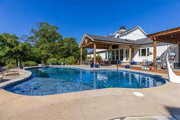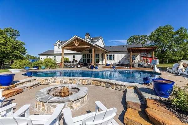 Stunning country estate with luxury upgrades and resort-style outdoor living. This spacious 5-bedroom home with office and multiple flex rooms offers an incredible layout, including a sewing/craft room and attached shop. The home features spray foam insulation and numerous upgrades throughout.May be sold with MLS# 2607617 Step outside to your private backyard retreat featuring a heated saltwater gunite pool with lagoon finish, a sun shelf with bubblers, fountain features, and sea turtle mosaics. Enjoy entertaining with an outdoor kitchen, pergola, fire pit, and outdoor shower, all surrounded by beautifully landscaped perennial gardens. The property is fully equipped for both recreation and country living, with fenced horse pastures, a 2-stall horse run-in shed with a feed/tack room, a chicken coop, a fenced pet area, and a custom tree fort. Additional features include solar panels, a whole-house gas generator, a Tesla/electric vehicle charger, and peaceful pond views. An exceptional property offering luxury, functionality, and outdoor enjoyment all in one beautiful setting.