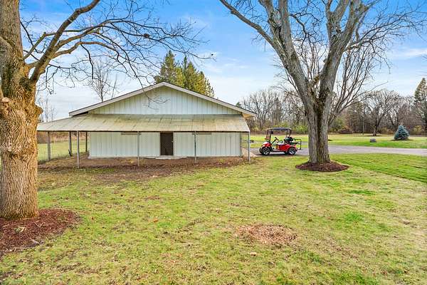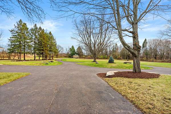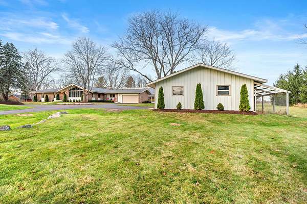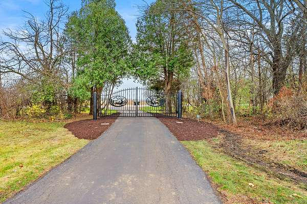 From the moment you drive through the electronic gates you'll want to call this one home. Stunning 5000 square foot Brick and cedar ranch on 5 acres. This 3 bedroom 3 bath home boasts hardwood flooring, granite, custom millwork ,6 panel doors first floor laundry, steam room, and so much more. The open concept of the living, dining and gourmet kitchen are absolutely ideal for entertaining. The vaulted wood ceilings and fireplace really make a statement.The master bedroom has its own private bath with walk in shower, and a private deck. Another unique feature of this home is the indoor patio with heated stone flooring. This area is also roughed in for a wet war. The recreation room adjoins the patio with soaring wood ceilings, trapezoid windows, sliding glass doors leading out to the stamped concrete patio. Great area for a golf simulator,Atrium, archery or whatever you desire. Partially finished basement with heated floors. 2 car attached garage and 2 car detached garage. All of this and so much more on a professionally landscaped gorgeous 5 acre lot zoned AG. Natural gas, not propane for heat.