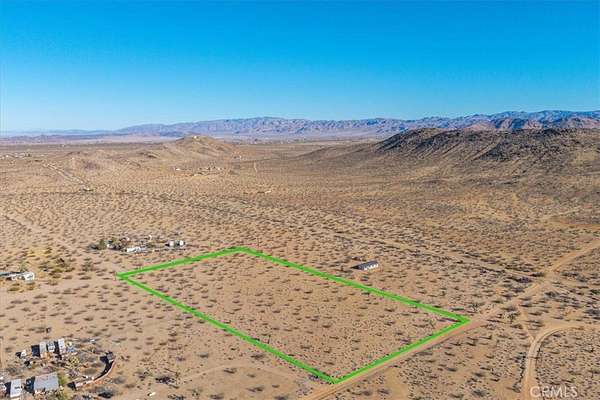 This stunning 5-acre parcel is nestled in a secluded desert cove, offering breathtaking 360-degree views and pristine desert vegetation. Despite its private setting, the property provides easy access to essential utilities, with power running along the east side and a stub out for a water meter already in place. An address has already been assigned, marking the first step in the permitting process and making development even more convenient. Surrounded by serene desert beauty, this land is the perfect canvas for your dream home, private retreat, or investment opportunity. While the setting feels remote and peaceful, you're just 20 minutes from the natural wonders of Joshua Tree National Park, the renowned cuisine at La Copine, and the shopping and dining options of Yucca Valley. This is a rare opportunity to own a piece of the high desert, where privacy, convenience, and spectacular landscapes come together. Don't miss out--contact your agent today for more details!