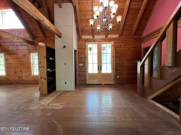 CAN BE FINISHED OUT TO SUIT YOUR NEEDS, OR CAN BE SHOWN/QUOTED MULTIPLE VARIATIONS TO BE FINISHED TO YOUR PREFERENCE Secluded Multi-Family Retreat on 8.29 Acres - Exceptional Value Motivated Seller - Bring an Offer! Welcome to a unique and expansive property offering endless potential, perfectly situated on 8.29 private acres just minutes from the heart of town. Located only 2 miles from shopping, hospitals, and schools, this extraordinary home provides the serenity of a secluded retreat without sacrificing convenience. High-speed internet is available, making this the perfect blend of rural tranquility and modern living. The original portion of the home showcases classic square-log construction with an open-beam ceiling in the main living area and wood flooring throughout the upper level, including the third-floor bedroom and bath. Pella windows have been installed throughout the original structure, providing energy efficiency and timeless style. The walk-out basement features two additional bedrooms, each with custom ceramic-tiled showers, and a stone fireplace, creating a warm and inviting lower-level living space. Adding to its appeal is over 5,000 sq. ft. of unfinished space, offering the opportunity to customize and expand. The addition includes plans for a luxurious master suite with fireplace, formal dining room, upstairs bunk room, and a massive 40' x 27' garage. A 22' x 43' basement area within the addition allows for even more living space, whether as additional bedrooms, recreation rooms, or a guest suite. Many windows in the new structure are already installed, and the entire home is covered by a new dimensional roof. Elegant double entry doors grace both the main entrance and the entrance to the addition, adding a stately presence and hinting at the possibilities within. This property is ideal for multi-generational living, or can be transformed into a bed & breakfast, boutique hotel, or wedding/event venue. With significant investments already made, this is a rare opportunity to complete and personalize a truly remarkable estate-priced well below current investment value. Owner will finish to suite starting at $300.00 per sq. foot. Tennessee living at its finest-enjoy four mild, distinct seasons, no state income tax, and a community rooted in natural beauty and hospitality. Contact us today to schedule your private showing. Don't miss the opportunity to make this exceptional property your own.