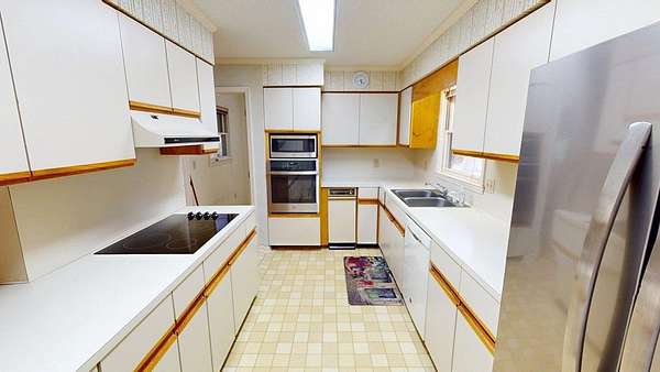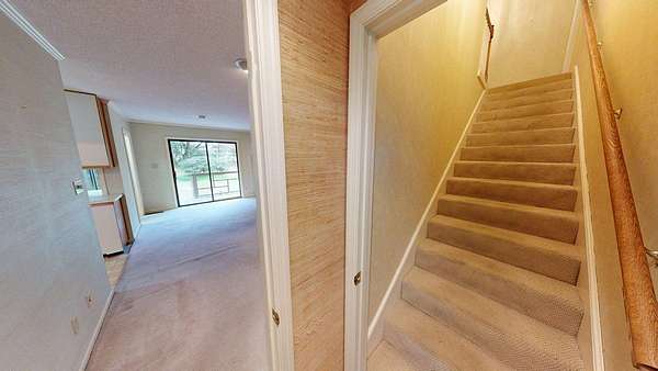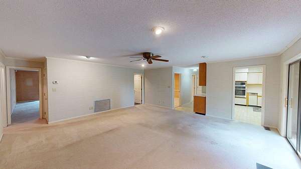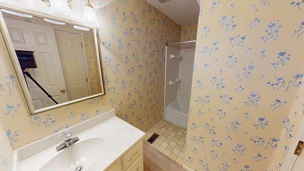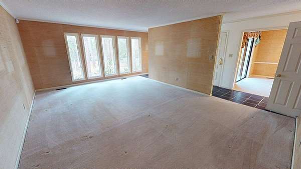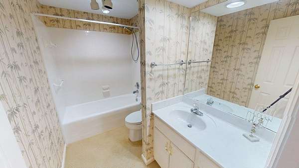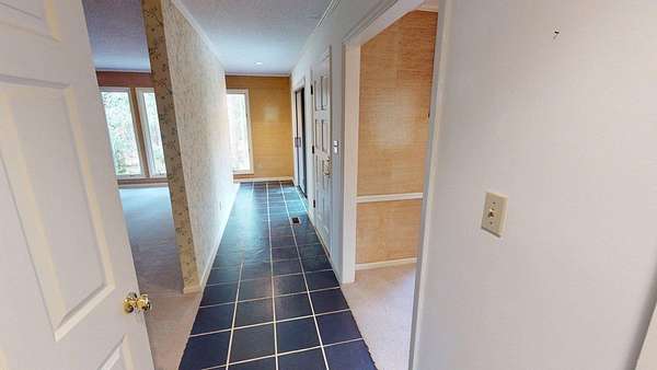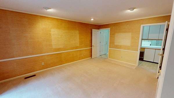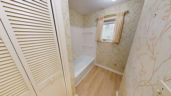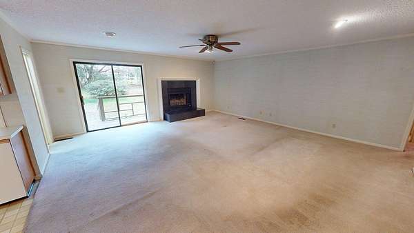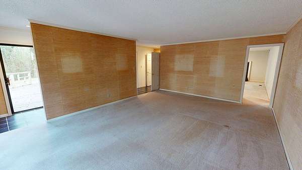 - Ceramic Tile Bath, Crown Moldings, Fireplace, Laundry Room, Light & Airy, Moulding, Sheetrock, Sliding Glass Doors, Wallpaper