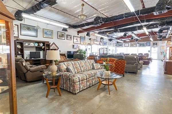 1.74 ACRES with a 10,809 sq. ft. industrial grade building in a high traffic area! This building was built for an International Harvester dealership and is currently being used as a Furniture Store and with 75 fully leased Davis Storage buildings. 10' x 12' and 2 - 14' x 24' storage units that are movable. This building has been utilized for many years as a successful Furniture Store that offers new and used quality furniture, U-Haul Business and storage units. The owners will sell the business also if interested. The furniture business has been a stable business in Mcalester and supported 3 families. If you are expanding your store you must take a look at this! It is fully heated and cooled With 5 air conditioning units and a mechanical room for the heat units. The building and lot could be utilized for light manufacturing, car dealership, trucking facility, warehouse etc. There is a loft area for furniture that can be removed and will leave ceilings that are 16' high. There is also a shop building on site and plenty of parking. Call for your viewing of this property!