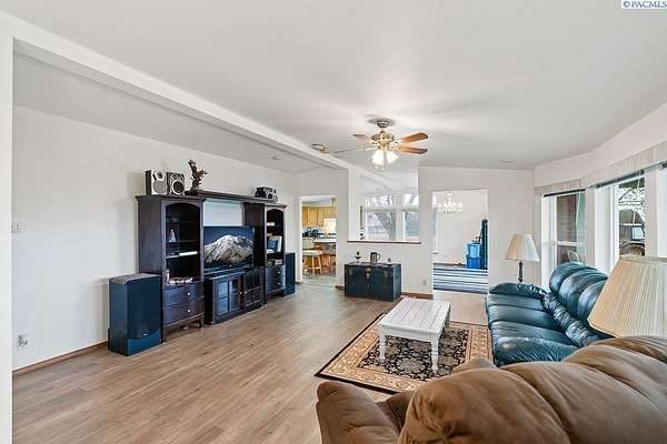 Est $3,153/moMLS# 289243 Prime North River Rd. location with panoramic Horse Heaven Hills views. 4.77 irrigated acres, fully fenced/cross-fenced and cattle-ready. Updated home with new laminate floors, new carpet, custom kitchen cabinetry, large center island, utility/mud room. Open, light-filled, with picture windows to capture the dynamic views. There is a covered front porch, and back patio. Huge shop with room for RVs, boats, and cars. Three 200 amp services, two wells, two septic systems, and dedicated RV hookups. Rural in feel yet minutes to downtown Prosser, schools, parks and the new hospital. Rare turnkey acreage--won't last!