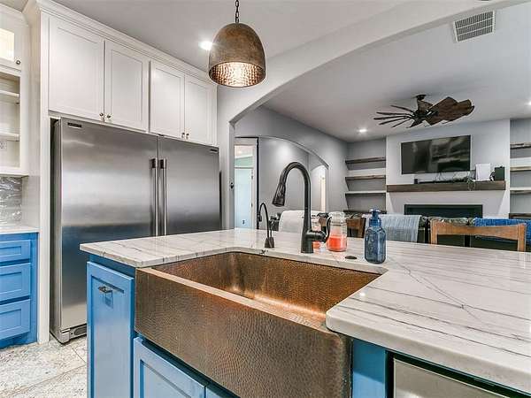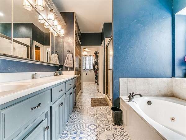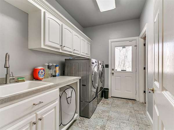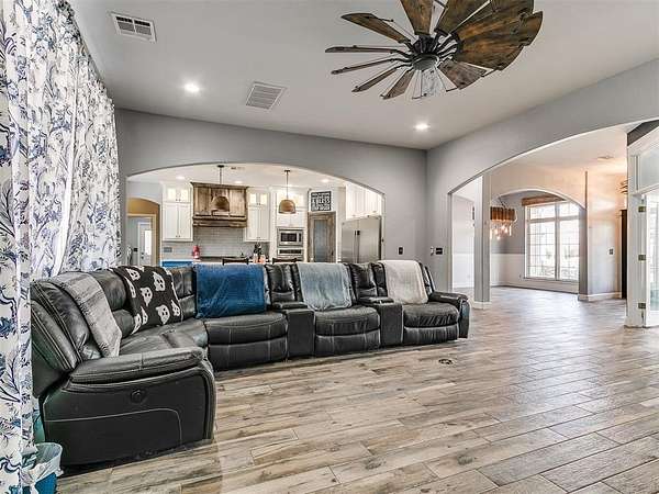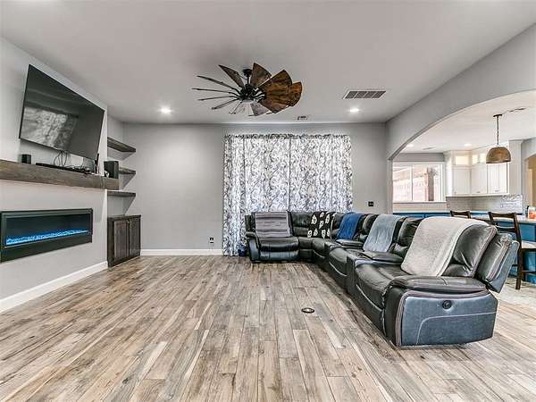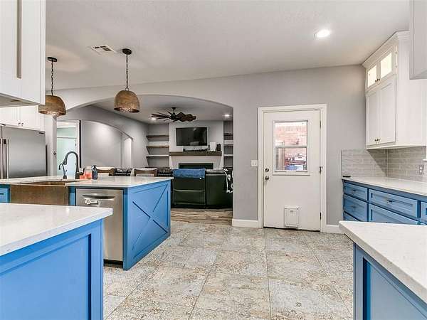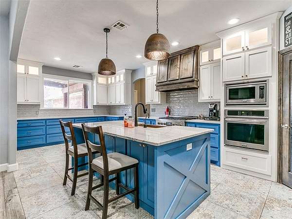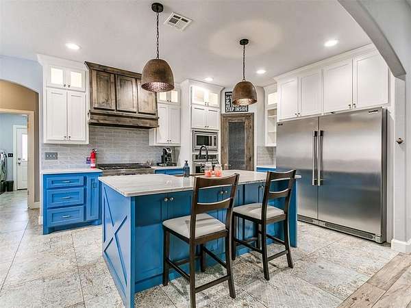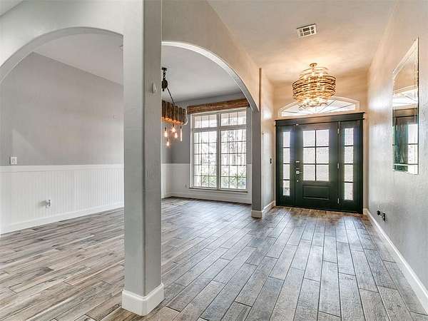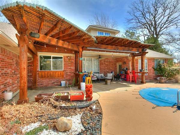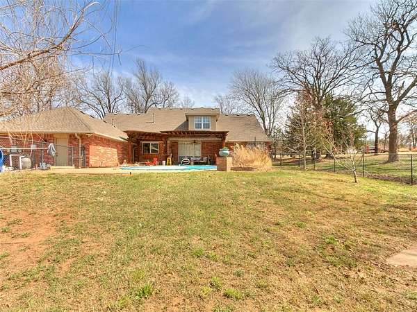 Looking for space-inside and out-without sacrificing location? This is it. Plenty of room for entertaining inside and outside. With over 4,000 sq ft, this home offers 5 bedrooms, an office, 3.5 baths, two living areas, and room to truly live. Situated at the end of a cul-de-sac on 1.5 acres (mol), the semi-wooded lot provides privacy, shade, and a peaceful setting. Step inside to an inviting open-concept layout designed for both everyday living and entertaining. The updated chef's kitchen features quartz countertops, striking blue cabinetry, professional-grade appliances, a butler's station, and an oversized pantry-built for connection and convenience. Cozy up by the fireplace or gather with friends and family in spaces that feel both open and comfortable. The spacious primary suite offers a true retreat with an updated ensuite bath, walk-in shower, and large closet. Downstairs also includes two additional bedrooms + office, a full and half bath, and a generous utility room. Upstairs features a second living area, two more bedrooms, and a full bath-flexible space for any lifestyle. Out back, enjoy your private oasis with a pool, pergola, and plenty of room for entertaining, relaxing, and making memories. Key Features: Pool + pergola with bar table, wooded lot, cul-de-sac location, covered patios, updated flooring (no carpet), gas fireplace, storm shelter, storage building, and attic lift in garage. Located in a highly desirable Choctaw neighborhood, close to everything-yet tucked away where it feels like your own retreat. This isn't just a home-it's where life happens. Come experience it for yourself.