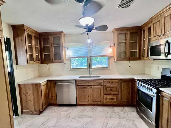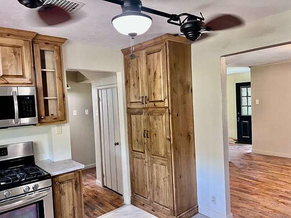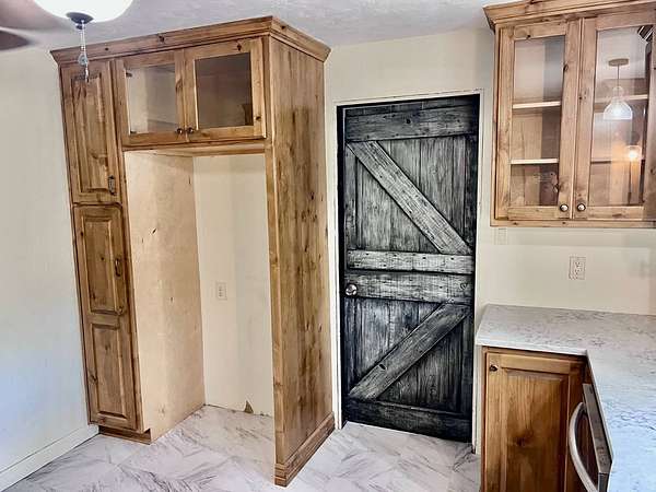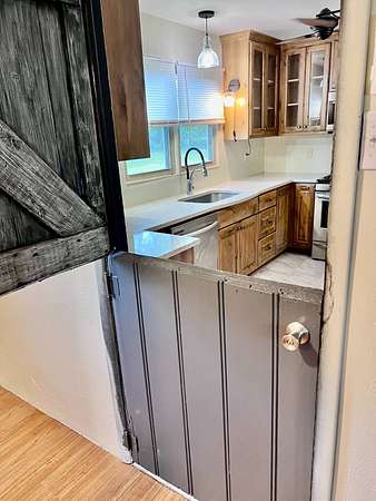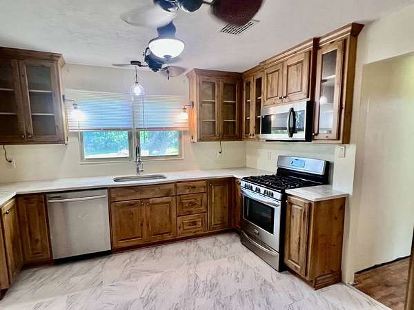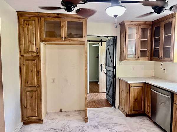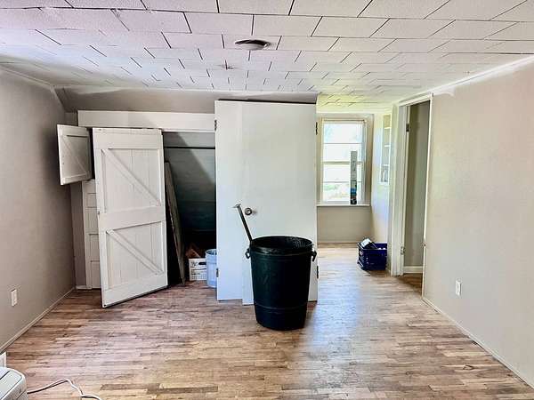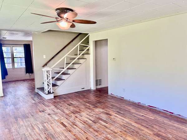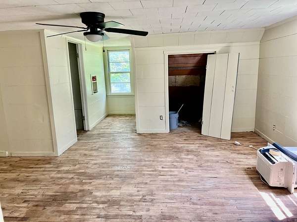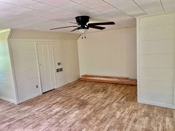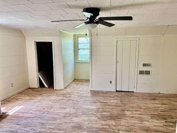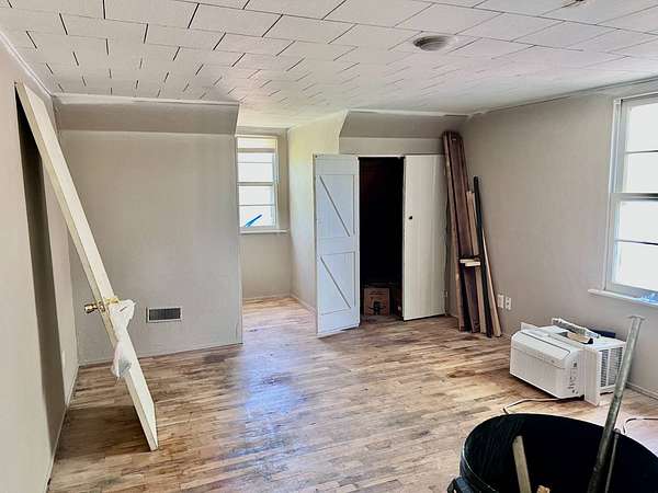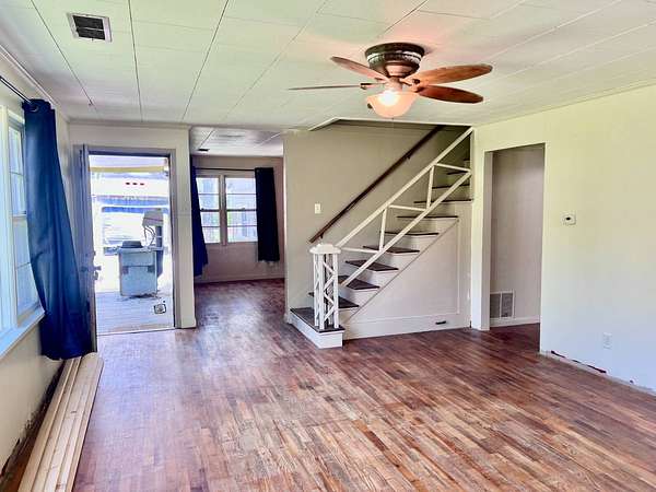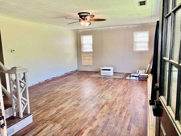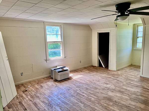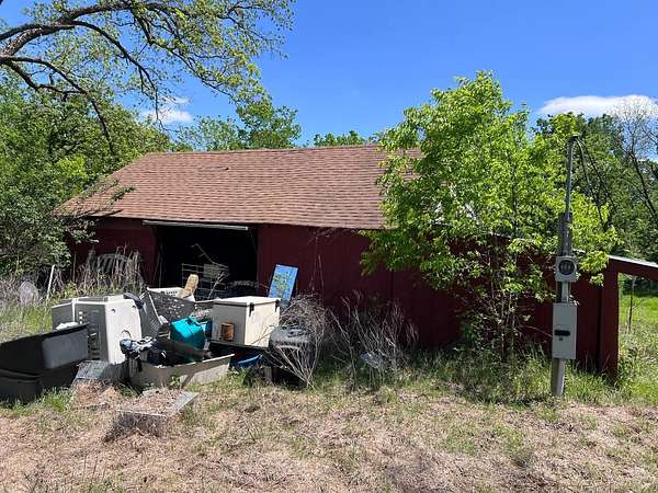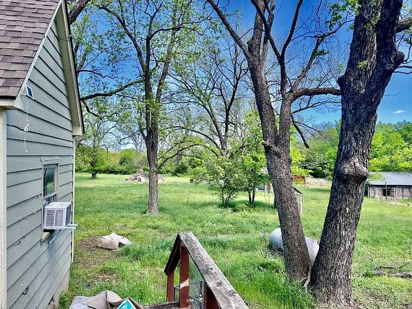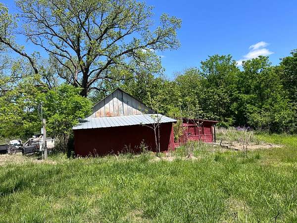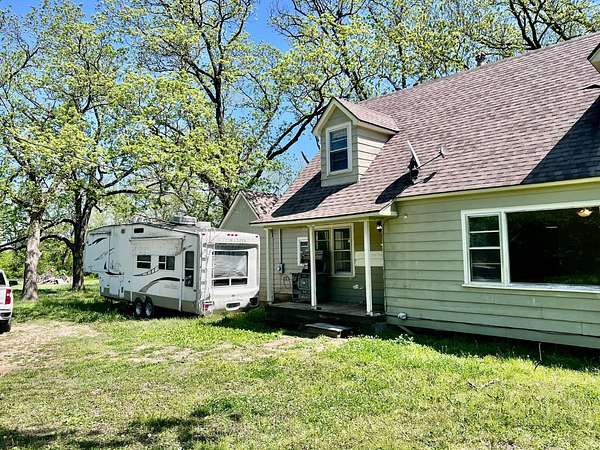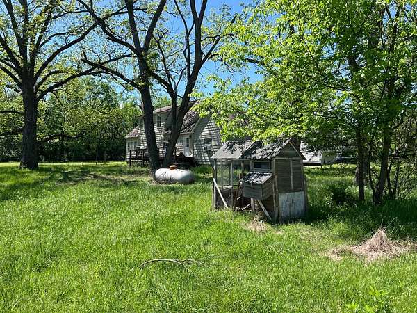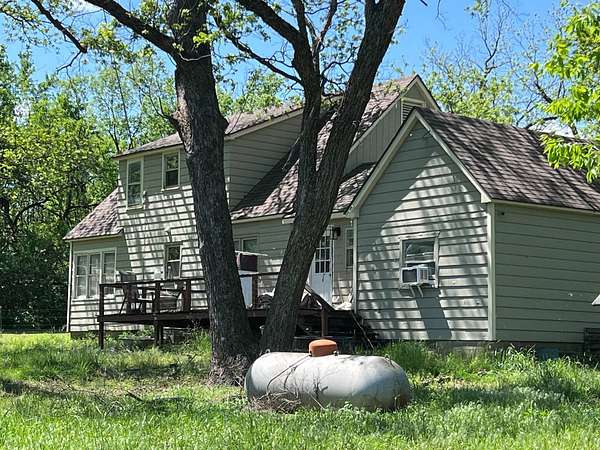 Country living with 9.85 acres more or less. House sits on west end of the property with the east end full of trees,deer, turkey and wildlife. Wet weather creek runs through the land and has running water during heavy rain. 1 1/2 story with main floor featuring, living room, primary bedroom with bath, beautiful newer kitchen,dining room, laundry room, extra room near laundry and bonus room that could be additional living space or bedrooms. Enter the laundry and bonus rooms from the kitchen through the split door. Once you enter this space on the north end of the house there is no heat. 5 new windows air conditioners will stay with the house.Original hardwood floors in much of the home. 2nd level features 2 large bedrooms and a full bath that needs some finishing, the sink is not hooked up. House has central heat except for the north end just past the kitchen. Covered front porch gives you room to sit and relax. Deck on the back of the house needs work but makes a great space to spend your time outside. This property is being sold "As Is" except for septic inspection. Property needs siding repairs and finishing on the interior. Lumber is there to repair flooring in living room where woodstove was installed and wall board for under the window. This property will not qualify for FHA, VA or USDA due to work that is needed. Finishing lumber and flooring that is in the house will stay with the property. Barns are in bad shape and need repaired. Fence does define the property however it will not hold animals. There is a water well with a cover over it near the north barn, seller says it's 40 feet deep and has water in it. House turn off for water is located north of the property near the old homestead. Heat up and down the furnace is located in an upstairs closet. Legal description: FAWN CREEK TWP, S05, T35, R16, ACRES 9.85, BEG SW COR NW/4 SW/4 N 409' ELY 1035' S 432' W TO POB; LESS R/W