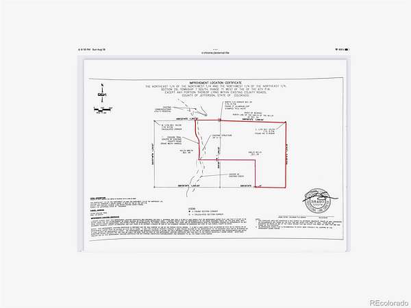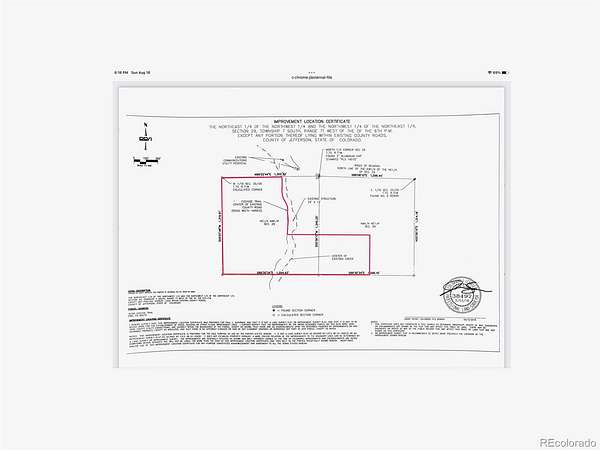 The Northeast 1/4 of the Northwest 1/4 and the Northwest 1/4 of the Northeast 1/4, Section 29, Township 7 South, Range 71 West of the 6th P.M., except any portion thereof lying within existing county roads, County of Jefferson, State of Colorado.