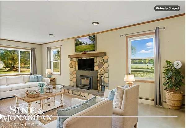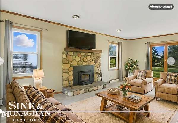 Est $1,807/moWelcome to this spacious 3-bedroom, 2.5-bath home nestled on 6.92 beautiful acres. Barn has 2 stalls, water and electric and a loft upstairs for storage, electrical updated a few years ago, well and septic are in good condition, whole main floor has been painting, new floors in main bathroom and laundry room, new Support beams in crawl space last year, fireplace insert and new stone work and mantle, new deck, whole house powerwashed, workshop for hobbyists. Owners have had a horse, cows, goats and sheep, 2 chicken coops remain on property, butterfly bushes, tiger lilies, Lilac bush, mcintosh, red delicious and fuji apple trees, walnut trees, 3 ponds, friendly neighbors. Some photos have digitally staged