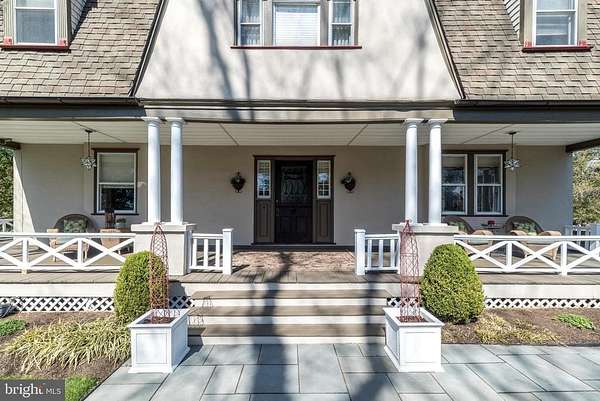 Charming 3-story, 6 Bedroom, 3 Full Bath Dutch Colonial Revival with over 3700 sq ft, featuring a signature gambrel roof, columned full-width wrap-around porch and charming Victorian accents, situated on a gorgeous 2.2 acre lot with fenced in-ground pool in the heart of Gwynedd Valley. Original details, intricate woodwork, gorgeous hardwood floors throughout and thoughtful craftsmanship create a sense of authenticity and charm that is simply irreplaceable. A circular drive enveloped by professionally landscaped mature trees and shrubbery leads to the bluestone front walkway. The Entrance Hall with solid wood front door features the 1st of 2 staircases leading to the 2nd floor. Relax in the lovely Living Room featuring a wood-burning fireplace with brick surround and brick hearth, a bay window with window seat, and an inviting Breakfast Nook located between the Kitchen & Living Room, featuring French doors opening to the covered Porch. The outstanding, completely renovated Kitchen can be entered either from the Breakfast Nook or from double French doors in the entrance Hall, providing an ideal flow for entertaining. A chef's delight awaits in the Kitchen with decorative tiled floor, marble counters, breakfast bar with wood counter and seating for 2, stainless farm sink with dishwasher, custom cabinetry, stainless Bosch dishwasher, 6-burner Thermador stove with custom hood, tiled backsplash, stainless Thermador wall oven with warming drawer and microwave, Subzero refrigerator, and decorative wood shelves. A separate 'Prep' area offers a stainless sink, double subzero freezer drawers, wine rack, custom millwork marble counter and pantry closet. Enjoy special meals in the spacious Formal Dining Room, experiencing the warmth of the 2nd wood-burning fireplace w/brick surround and brick hearth and the 2nd window seat. An enclosed Vestibule adjacent to the Kitchen provides an alternative entrance to the house from the driveway & features a reclaimed wood bench, decorative tiled floor & coat hooks. 2 sets of stairs lead to the 2nd floor including one staircase in the Entrance Hall & one from the Kitchen. The 2nd Floor hall leads to 4 bedrooms. The Main Bedroom with dormer window & ceiling fan connects to the Main Full Bath with tiled floor, soaking tub with shower w/sliding glass doors, furniture-style vanity w/vessel sink and built-in cabinetry with glass cabinets and drawers. The 2nd Bedroom, which is connected to the Main Bedroom can also serve as a Sitting Room or Office. Bedrooms 3 & 4 are served by the renovated beautiful Full Hall Bath with radiant-heated tiled floor, stall shower with frameless glass door and 2 shower heads, and a furniture-style vanity with vessel sink. 2 additional Bedrooms & a Full Hall Bath with stand-alone tub w/shower & built-in cabinetry are located on the 3rd floor. The 2-Car Garage provides 2 automatic doors and a vaulted ceiling with storage above. Step outside and discover your own private retreat. The expansive grounds offer both beauty and tranquility, with mature landscaping & open space perfect for relaxation or recreation. A bluestone Patio is located adjacent to the side entrance. The fully-fenced in-ground Pool and heated Spa adds a resort-like touch, making summer days unforgettable and providing the perfect setting for entertaining family and friends. Other special features include a whole-house generator, 2 sheds, raised panel doors with glass knobs, oil-fired radiant heat & high velocity central air. This special Gwynedd Valley location, within highly rated Wissahickon School District, is within walking distance to the train to center city & also provides access to the Green Ribbon trail adjacent to the property. It is also close to the charming town of Ambler with 1st run movie theater, restaurants & boutique shops. Don't miss the opportunity to own a home where enduring historic charm lives in every corner & possibilities are as expansive as the grounds themselves.